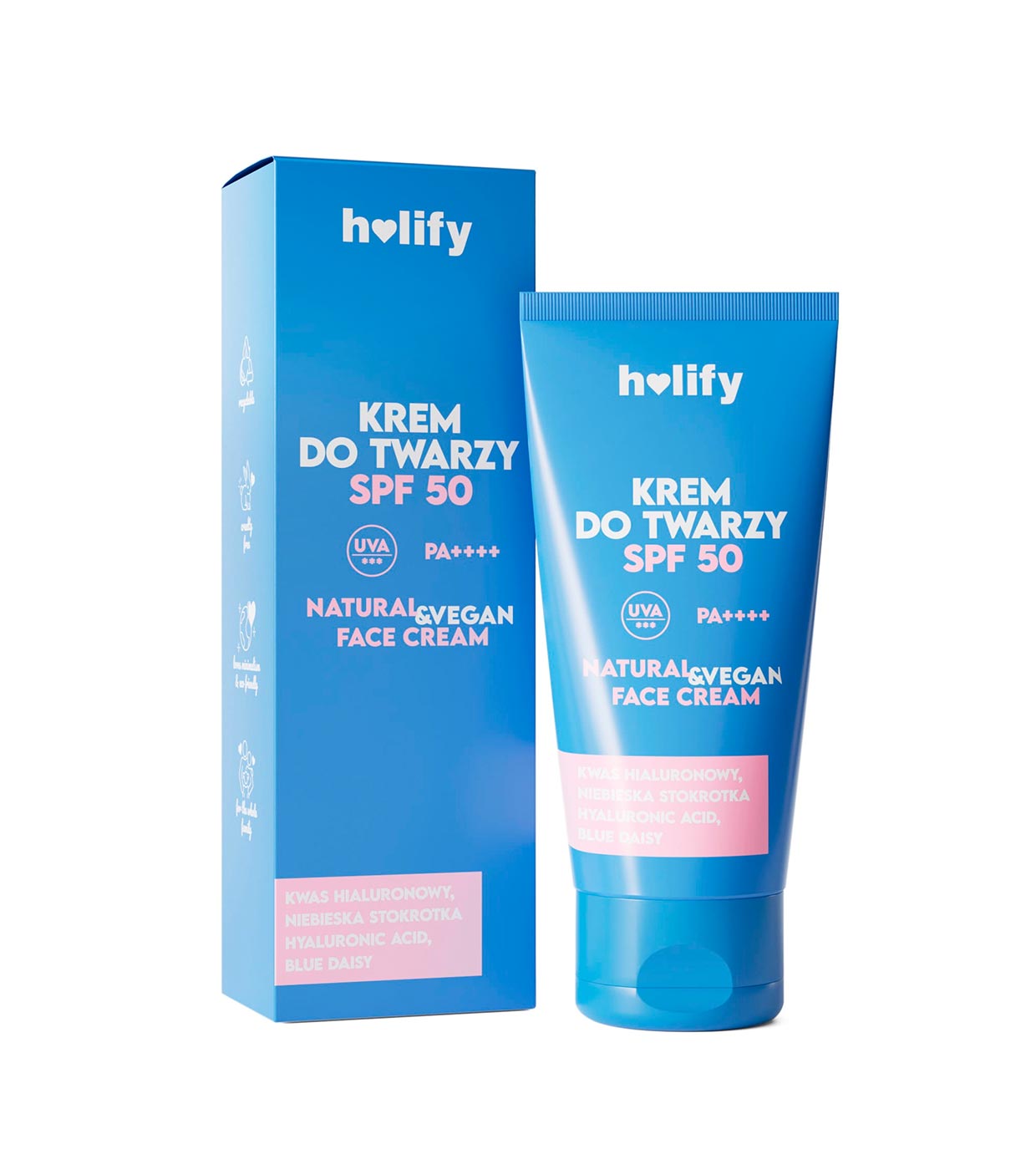 Experimente la combinación perfecta de hidratación y protección frente a los rayos nocivos del sol con la crema protectora solar facial hidratante SPF50 PA++++ de Holify.
