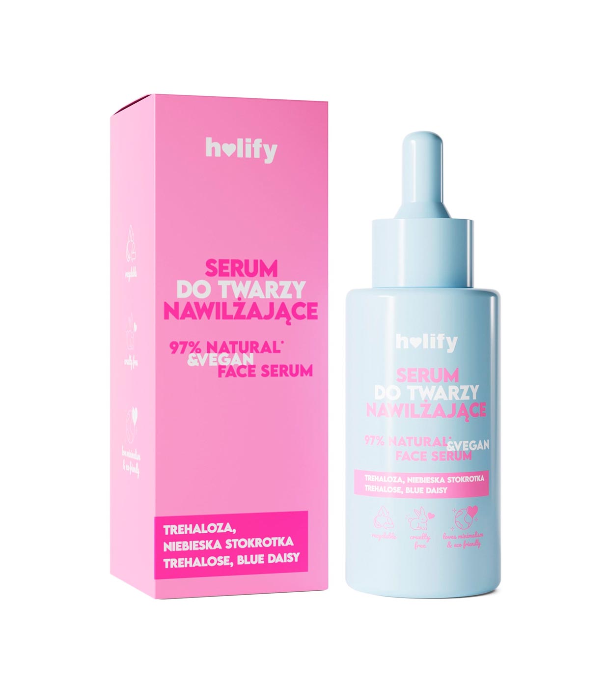 El sérum facial ligero de Holify proporciona una hidratación duradera, dejando una agradable sensación aterciopelada en la piel.