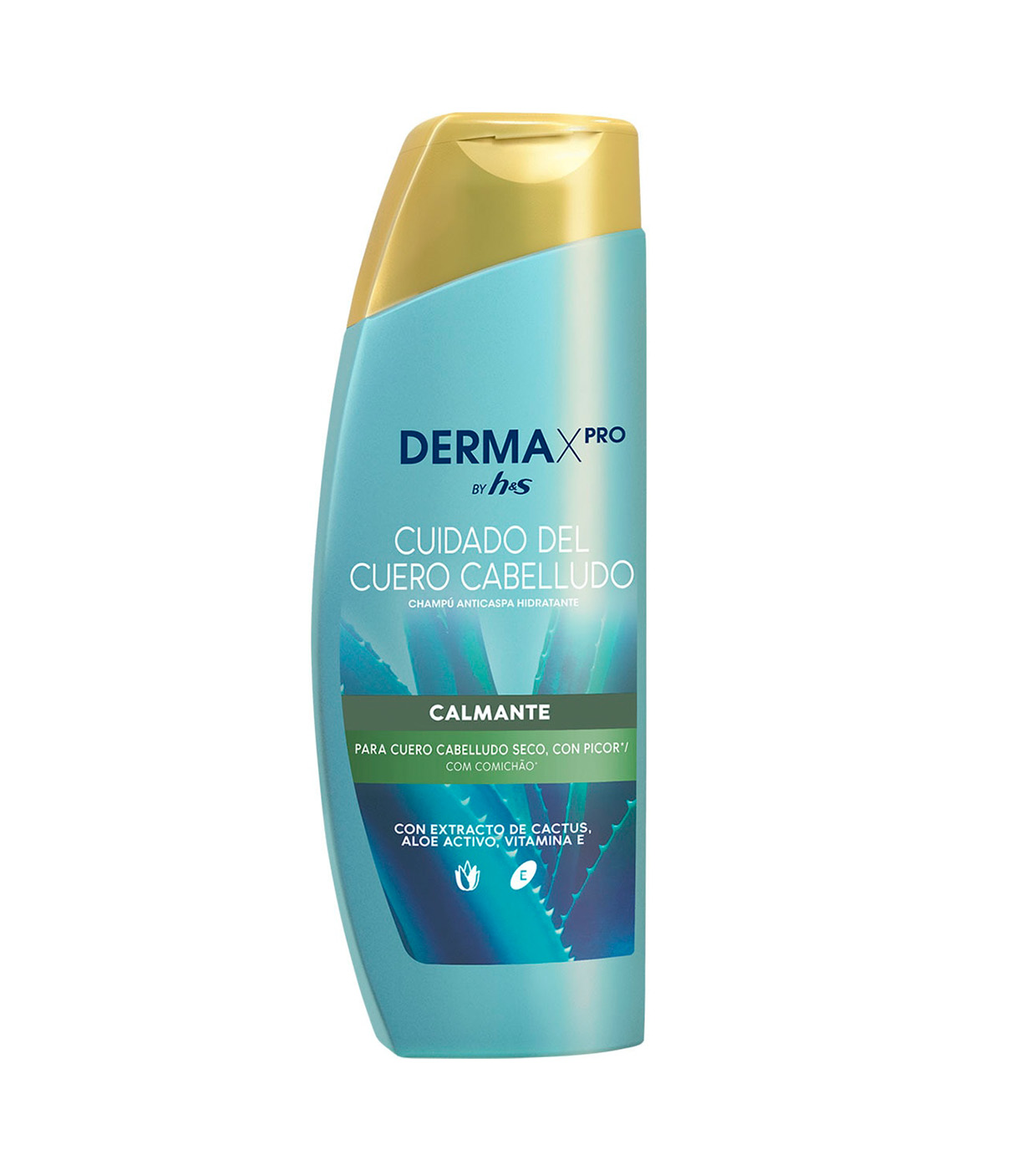 El champú anticaspa Calmante Derma X Pro con extracto de cactus, aloe activo y vitamina E para cuero cabelludo seco o con picor.