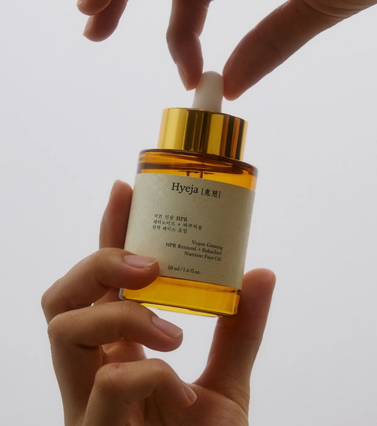 El Vegan Ginseng HPR Retinoid + Bakuchiol Nutrient Face Oil de Hyeja es un aceite facial vegano formulado para tratar los primeros signos de envejecimiento de forma eficaz y respetuosa con la piel.
