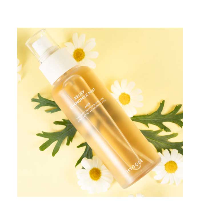 Bruma facial hidratante Relief Chamomile Mist de Hyggee con manzanilla, ácido hialurónico y escualano.