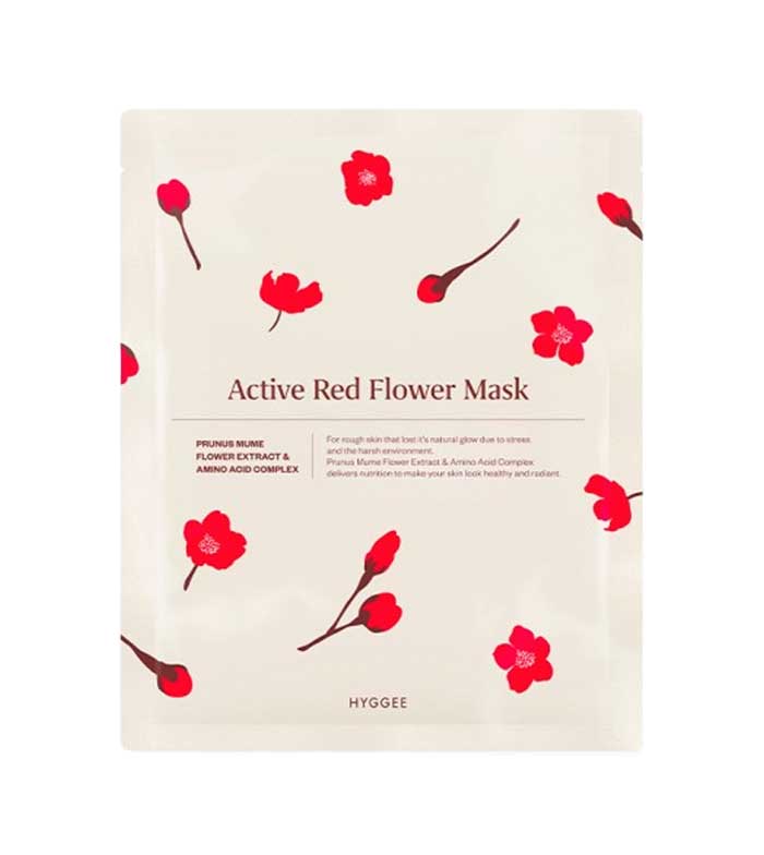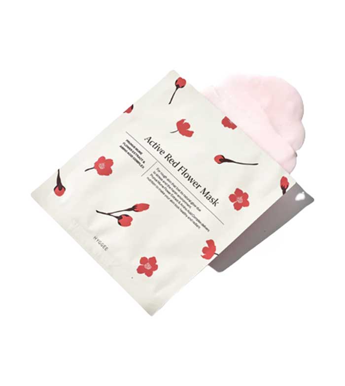 Active Red Flower Mask de Hyggee consigue hidratar en profundidad, nutrir y proteger la piel del envejecimiento prematuro gracias a su completa fórmula.