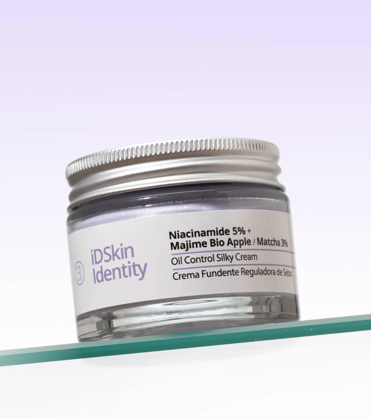 Descubre la nueva generación del cuidado facial con esta crema facial fundente reguladora de sebo de ID Skin Identity que se transforma al contacto con tu piel.