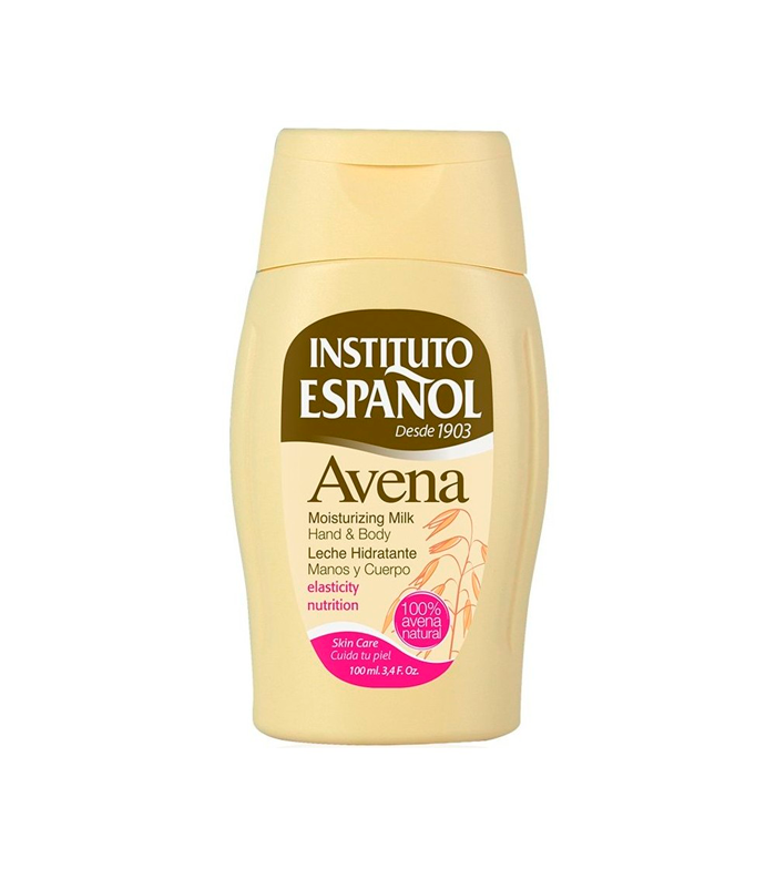 La leche hidratante de avena de Instituto Español presenta propiedades calmantes, emolientes e hidratantes sobre la piel.