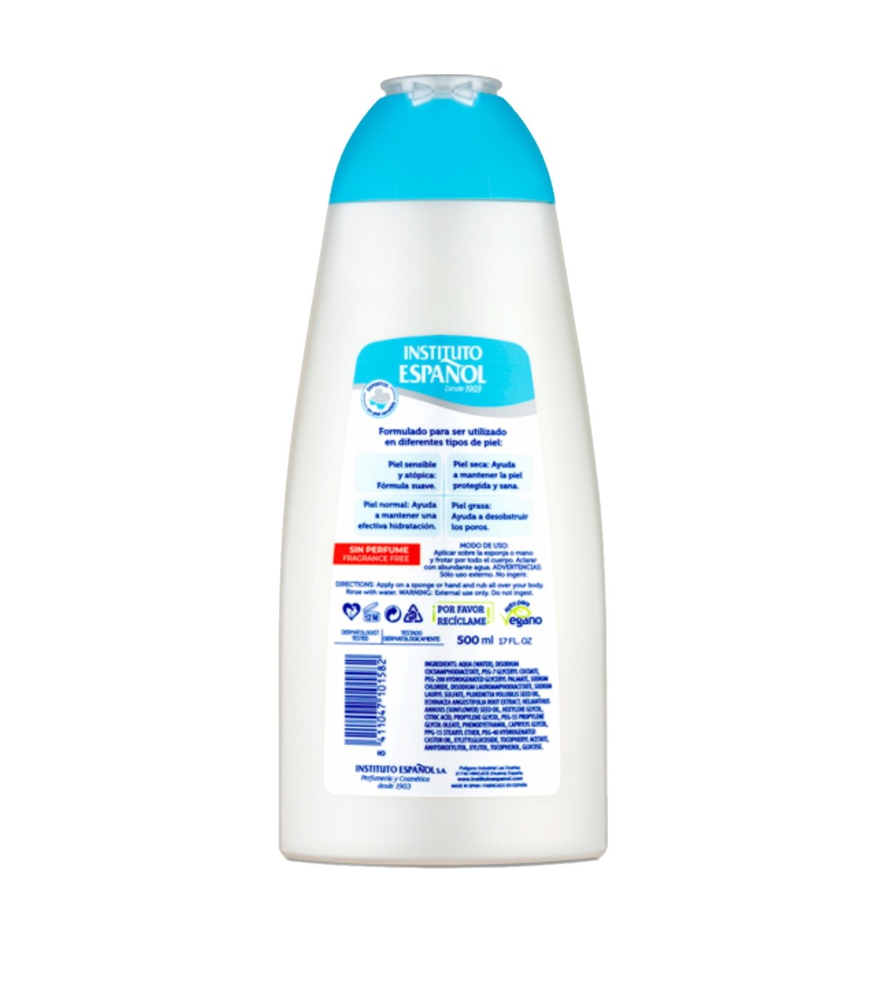 Su base suave limpia sin provocar irritación, formando una película homogénea que hidrata la piel y potencia la elasticidad y tersura de la piel.