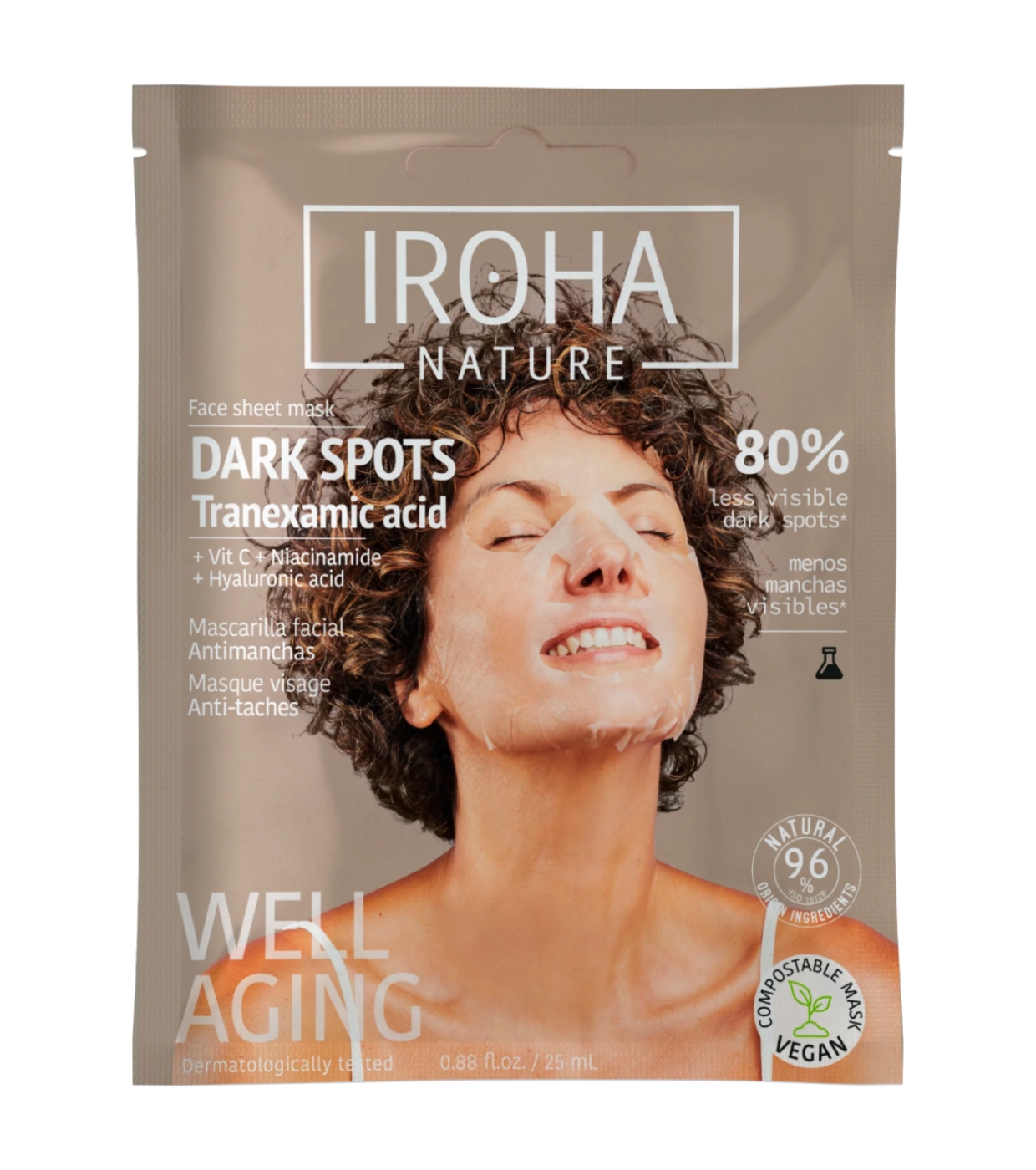 La mascarilla facial con Ácido Tranexámico Dark Spots de Iroha Nature ha sido formulada con Ácido Tranexámico, un activo altamente eficaz para prevenir y reducir las manchas visibles, unificar el tono y mejorar la luminosidad de la piel.