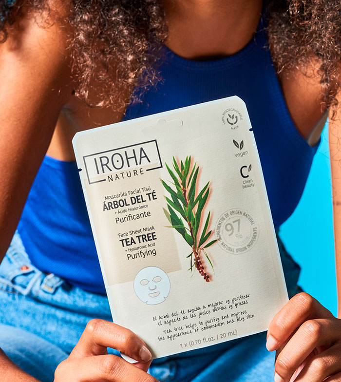 La mascarilla es 100% biodegradable y vegana. Indicada para piel mixta o grasa con tendencia a tener imperfecciones o puntos negros.