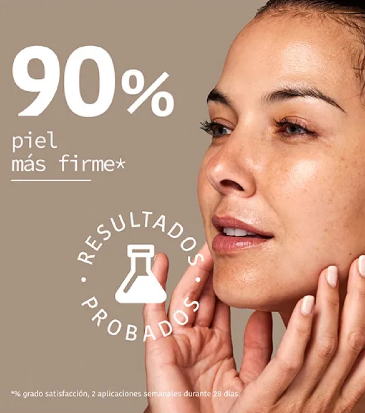 El otro ingrediente clave son los péptidos que estimulan la producción de colágeno mejorando la firmeza de la piel y suavizando las arrugas y líneas finas.