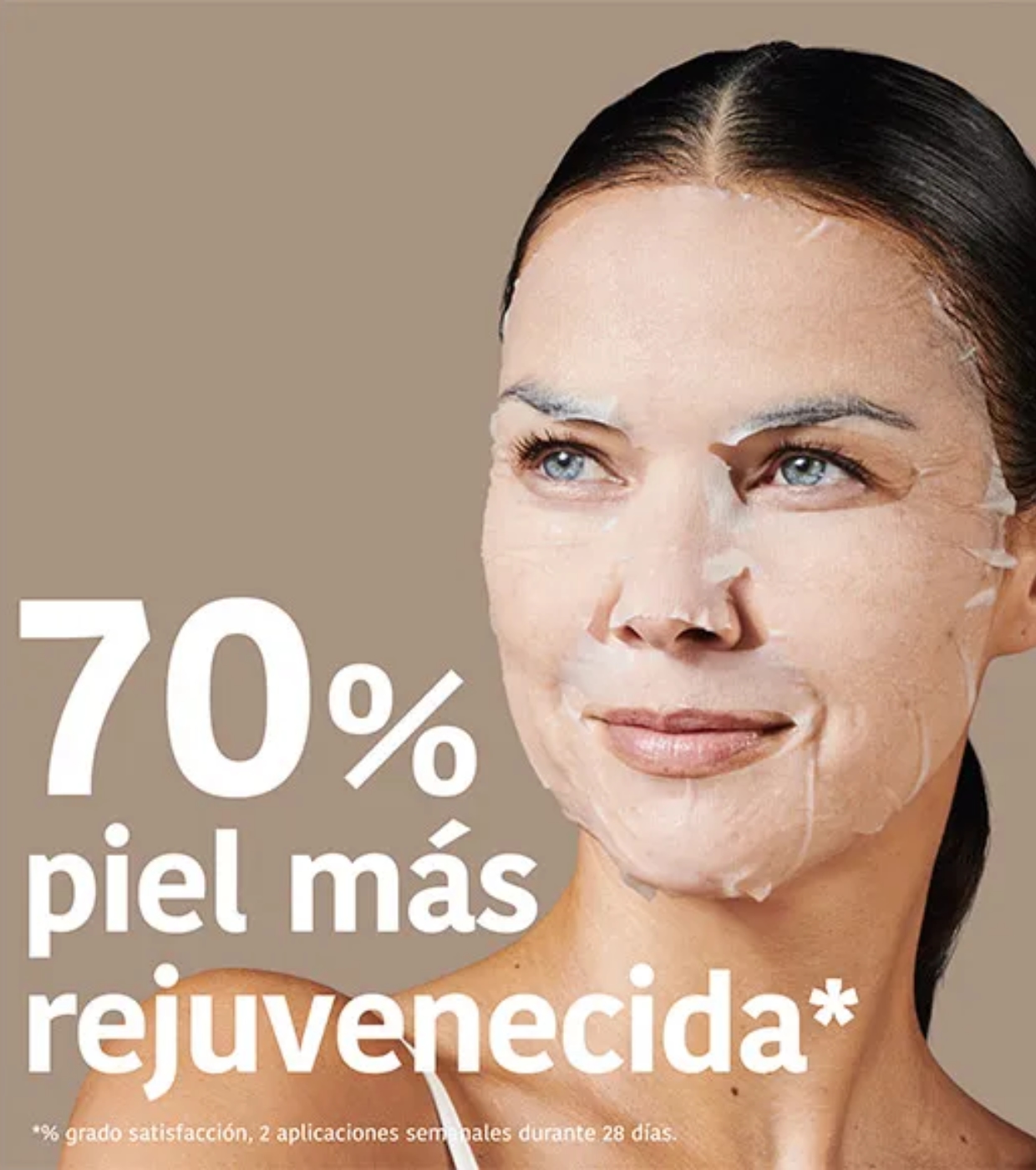 Esta mascarilla facial reafirmante y antiedad reafirma la piel y promueve la producción de colágeno.
