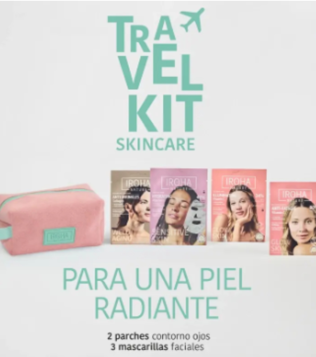 Luce una piel radiante estés donde estés con el Travel Kit de IROHA NATURE, un set de cuidado facial completo y práctico que reúne tus esenciales de belleza en un neceser exclusivo de tejido toalla, suave y cómodo de transportar.