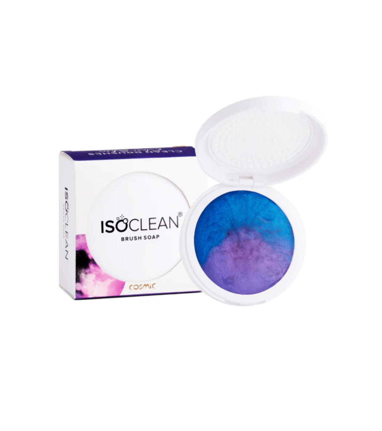 El limpiador de brochas en jabón compacto de ISOCLEAN es la solución rápida y eficaz para mantener tus brochas siempre limpias y frescas.