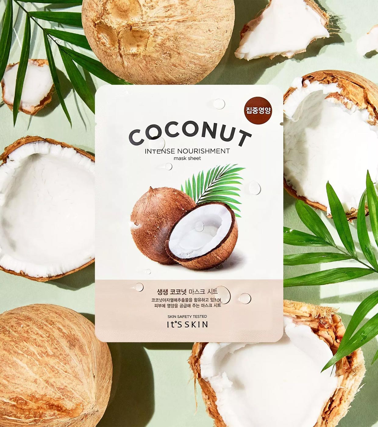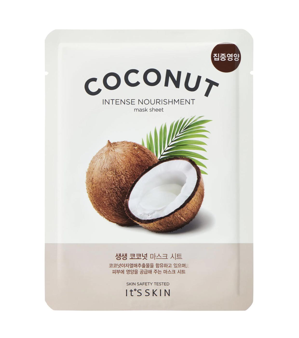 Mascarilla facial hidratante con extracto de coco que nutre y suaviza intensamente la piel.