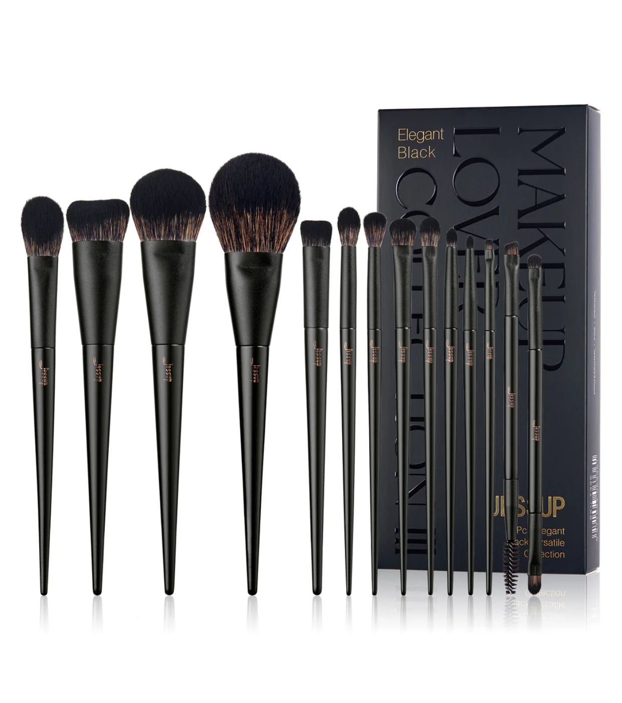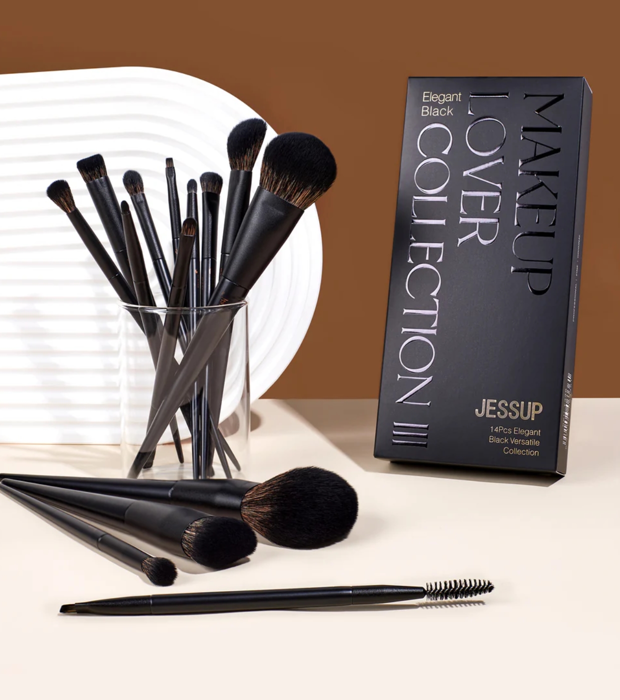 Set de 14 brochas Elegant Black Makeup Lover Collection III de Jessup Beauty.
