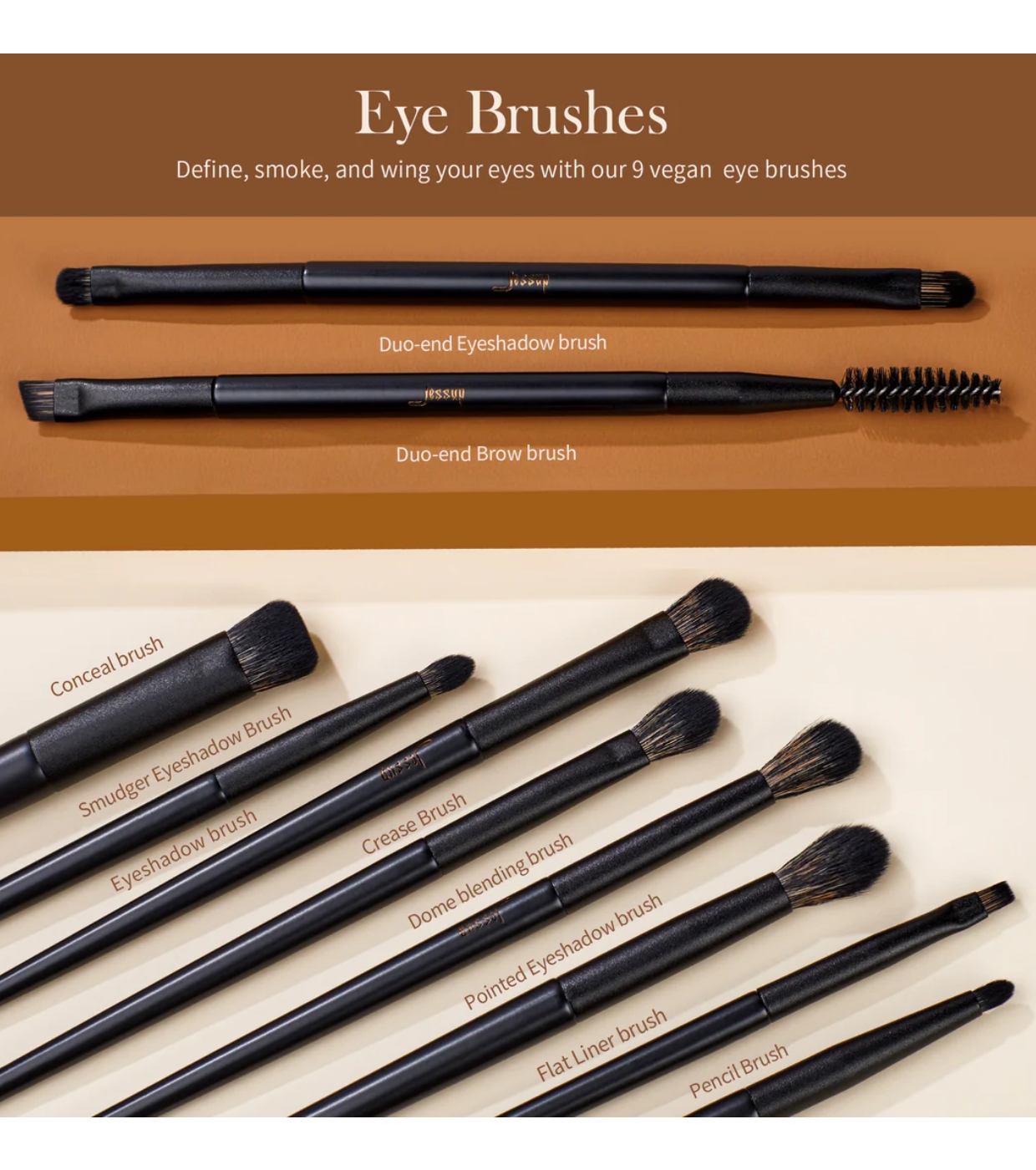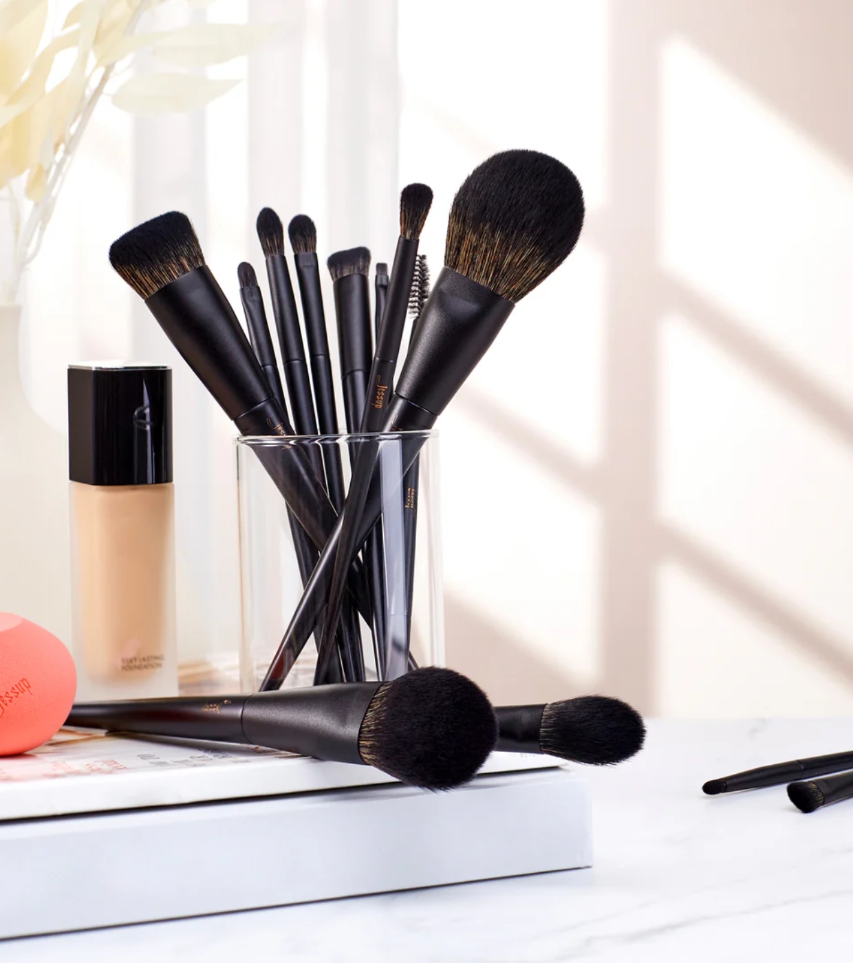 Con este conjunto de 14 pinceles negros de alta calidad, tendrás a tu disposición las herramientas necesarias para crear desde una base impecable hasta detalles únicos en los ojos.