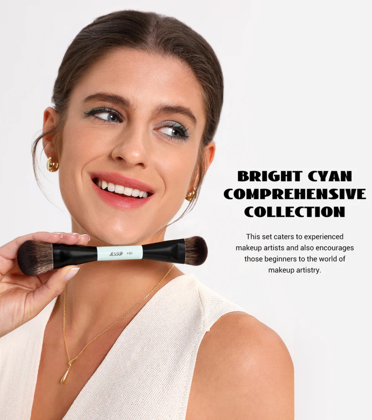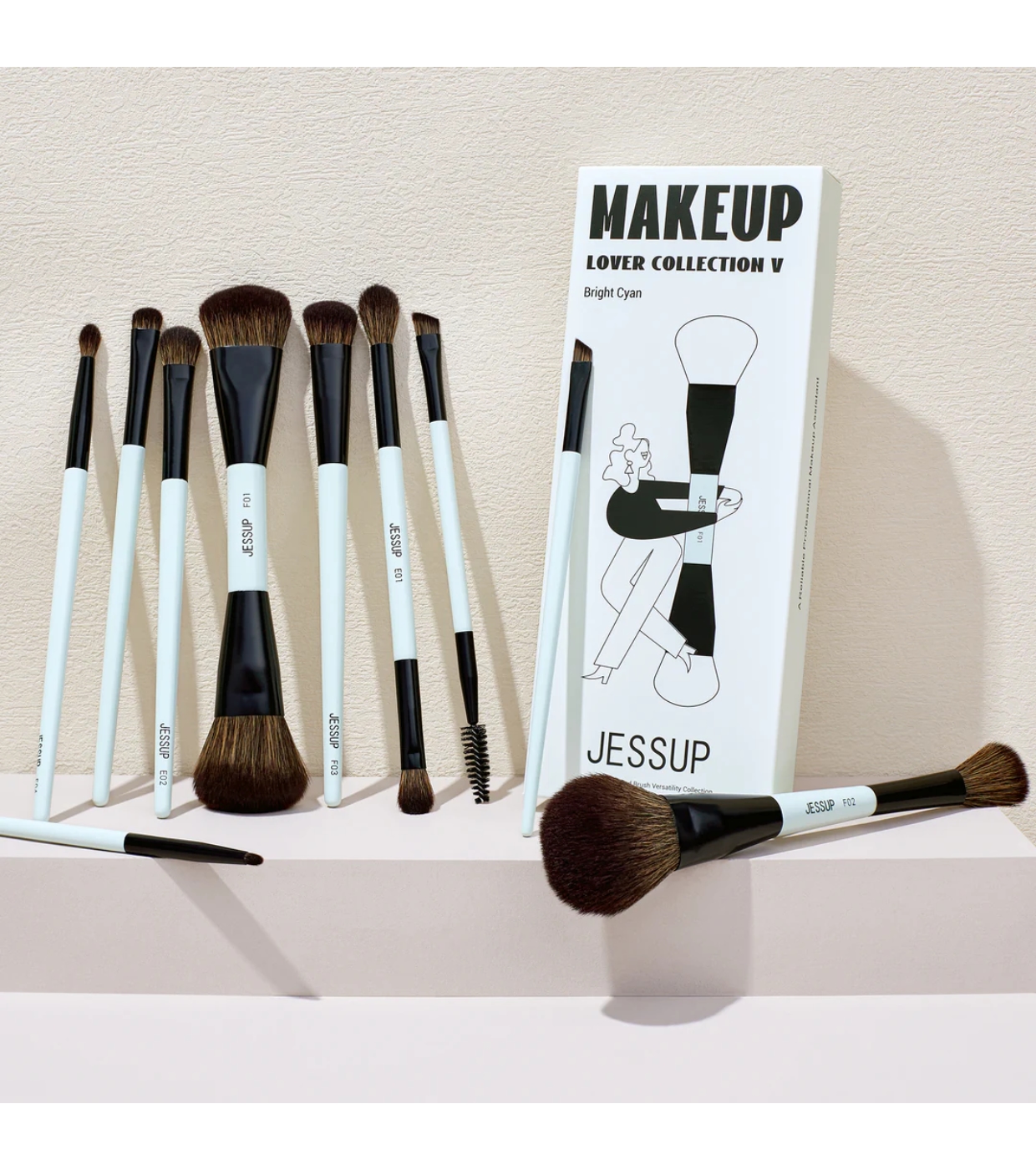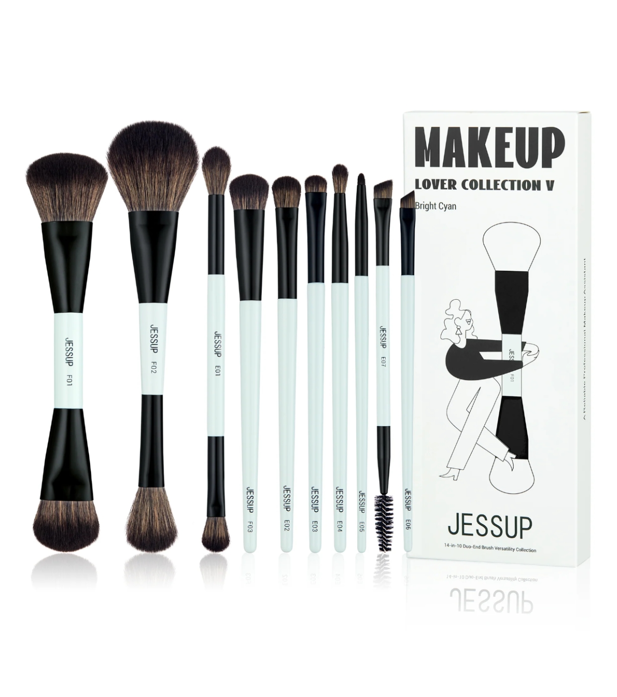 Set de 10 brochas Bright Cyan Makeup Lover Collection de Jessup Beauty.