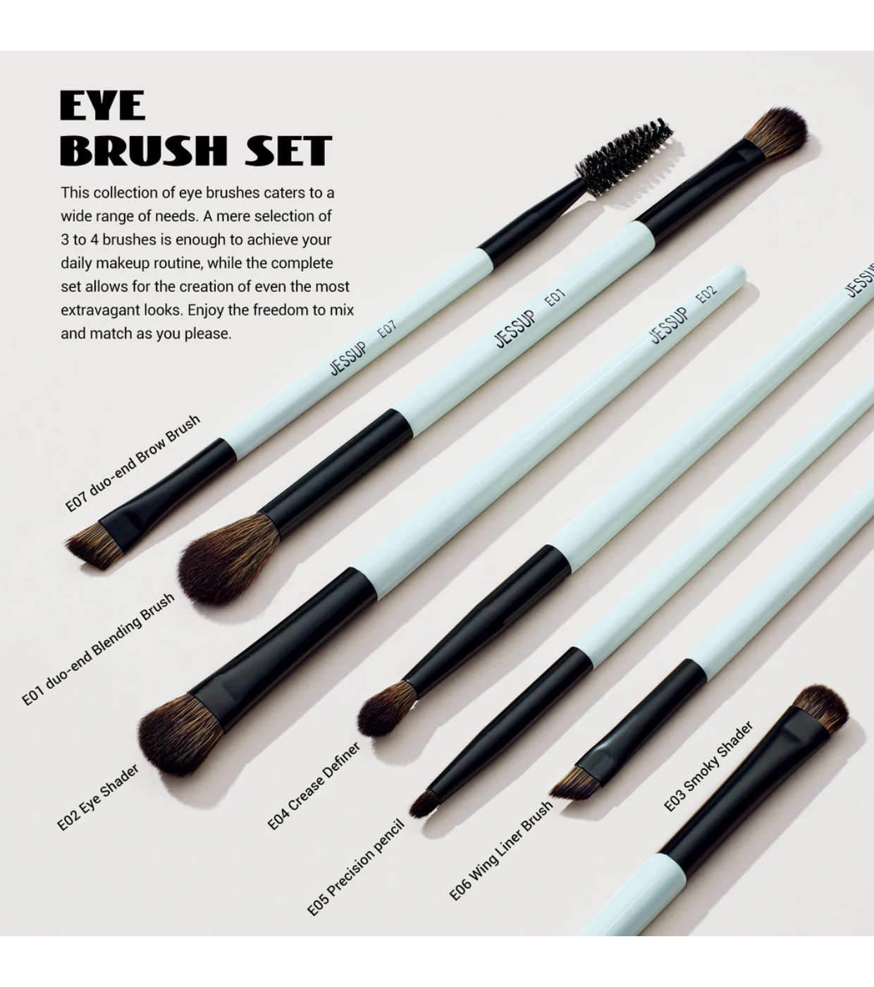 - E06 Pincel delineador de alas: Diseñado para crear el ala perfecta de eyeliner, desde un look sutil hasta uno más intenso.
