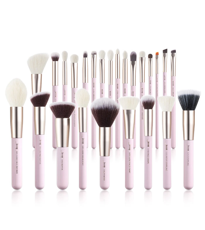 Un set de brochas y pinceles en color rosado ideal para principiantes y profesionales.