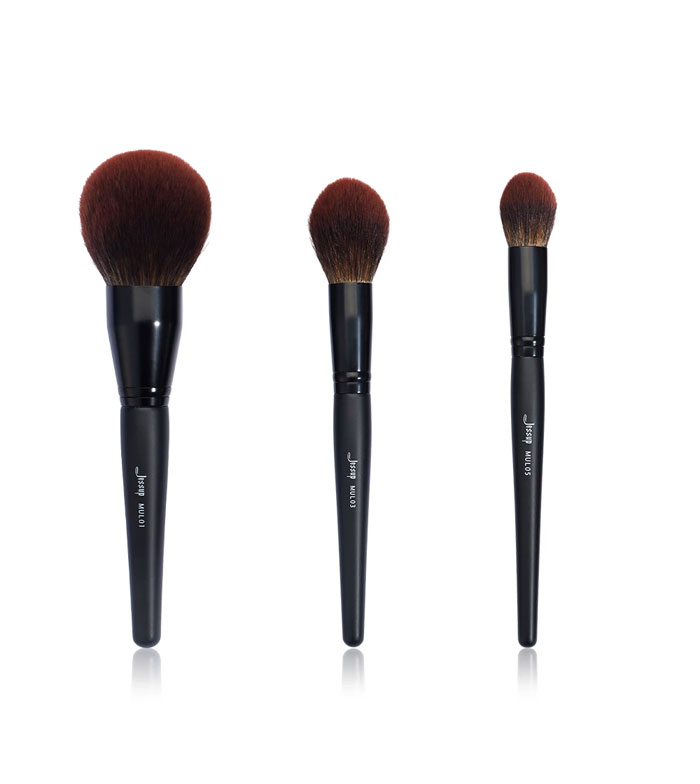 Set de 3 brochas para el rostro con un elegante diseño en color negro.