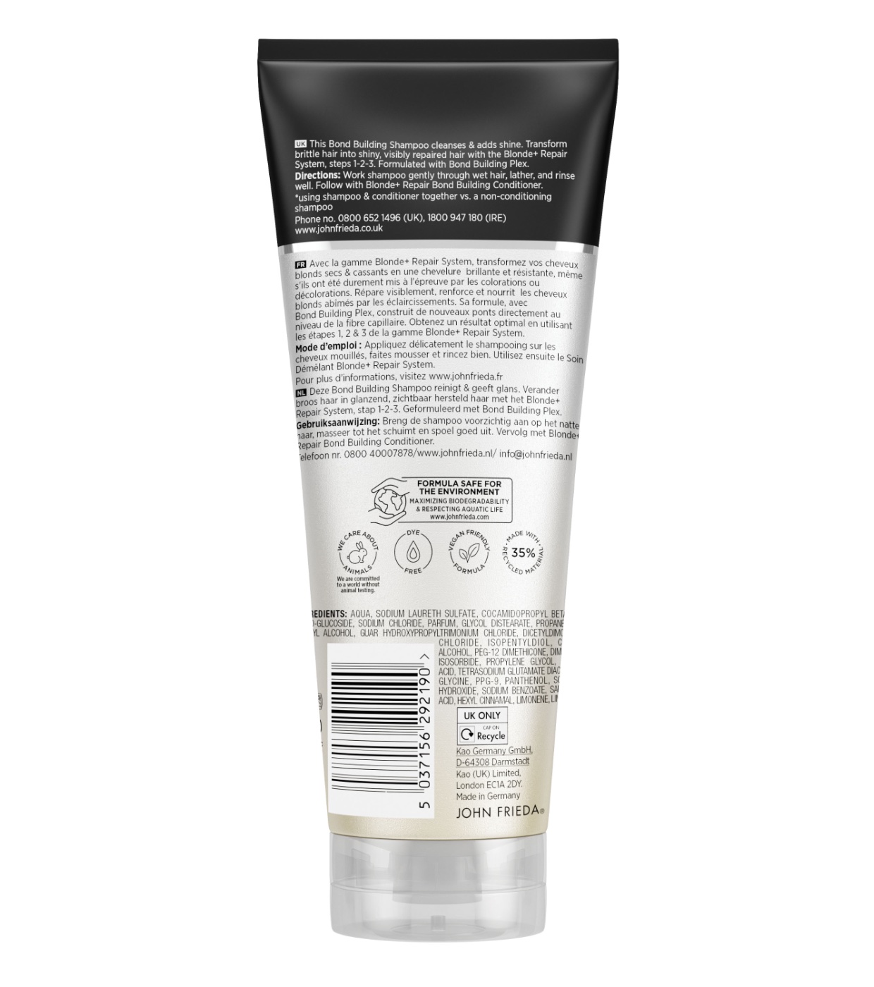 La gama Blonde+ Repair System está especialmente diseñada para cabellos rubios, para revertir los signos de daño causado por la decoloración frecuente, la coloración y las herramientas de calor.