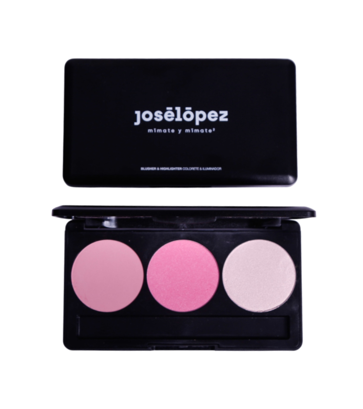 Esta paleta de rostro de José López combina dos coloretes fríos altamente pigmentados con un iluminador ultrafino que se funde con la piel, aportando frescura sin marcar líneas de expresión.