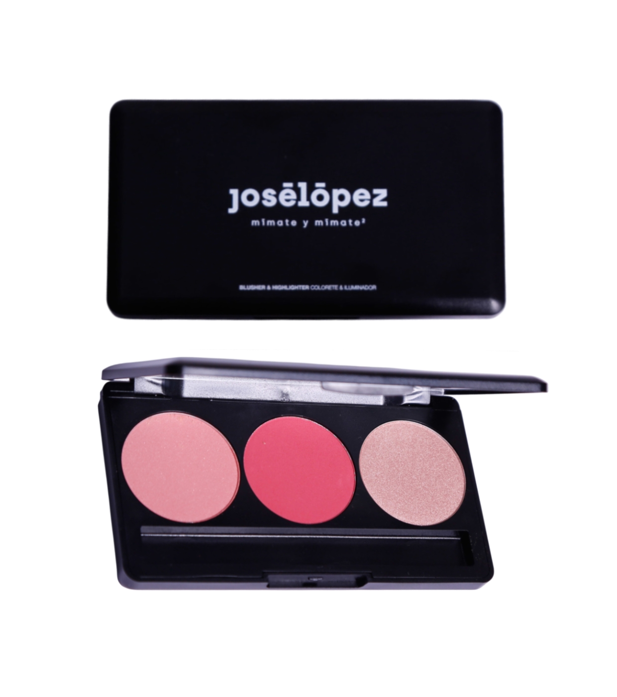 Esta paleta de rostro de José López combina dos coloretes cálidos altamente pigmentados en los tonos Apricot y Coral, con un iluminador cremoso y ultrafino que aporta un brillo natural sin marcar líneas de expresión.