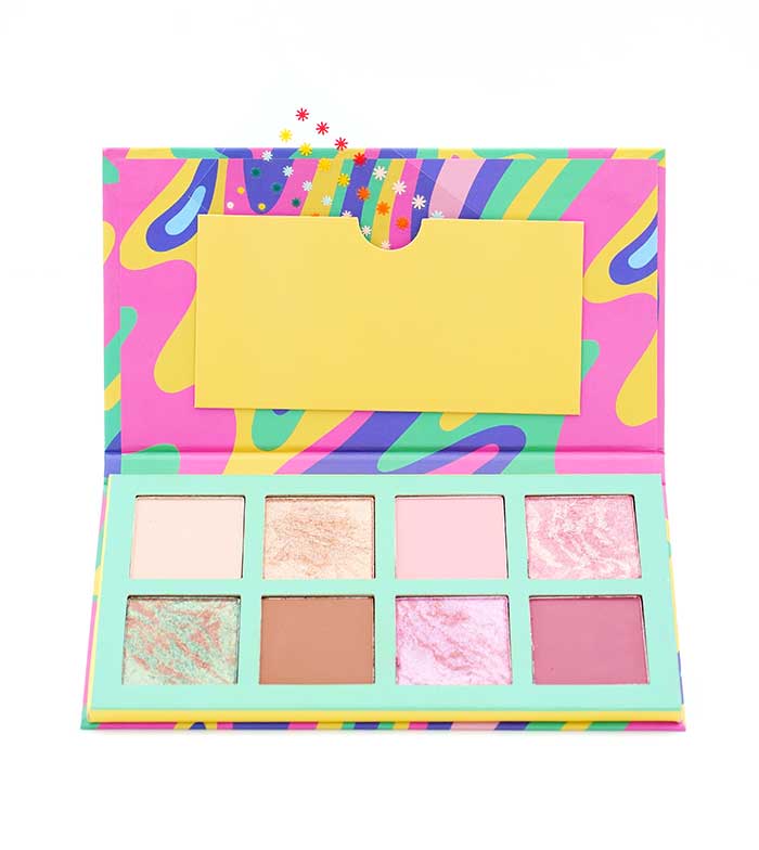 Cada paleta va acompañada de un set de pegatinas faciales, para que juegues y crees.
