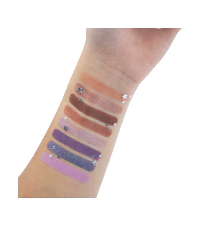 Contiene 8 sombras de larga duración, altamente pigmentadas y ultra sedosas, desde mates hasta tonos metálicos ultrabrillantes, perlados y marmolados.