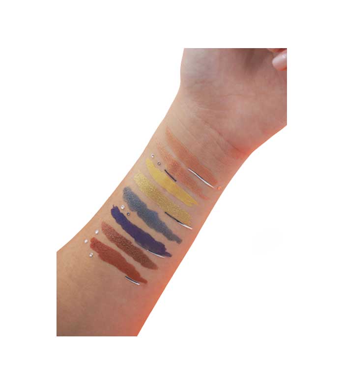 Contiene 8 sombras de larga duración, altamente pigmentadas y ultra sedosas, desde mates hasta tonos metálicos ultrabrillantes, perlados y marmolados.