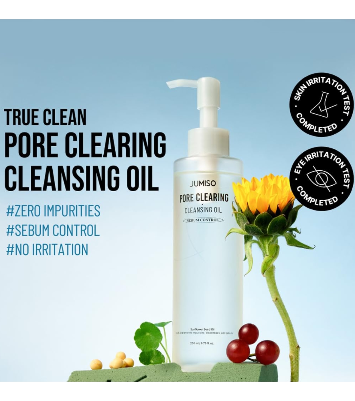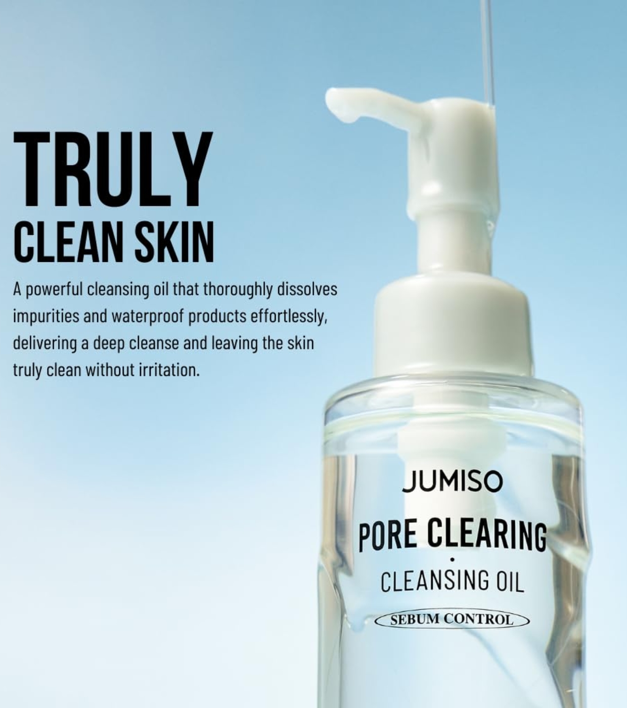 El aceite limpiador para poros Pore Clearing de Jumiso es un limpiador suave pero poderoso formulado con aceites de origen natural como el aceite de semilla de jojoba y el aceite de semilla de girasol.