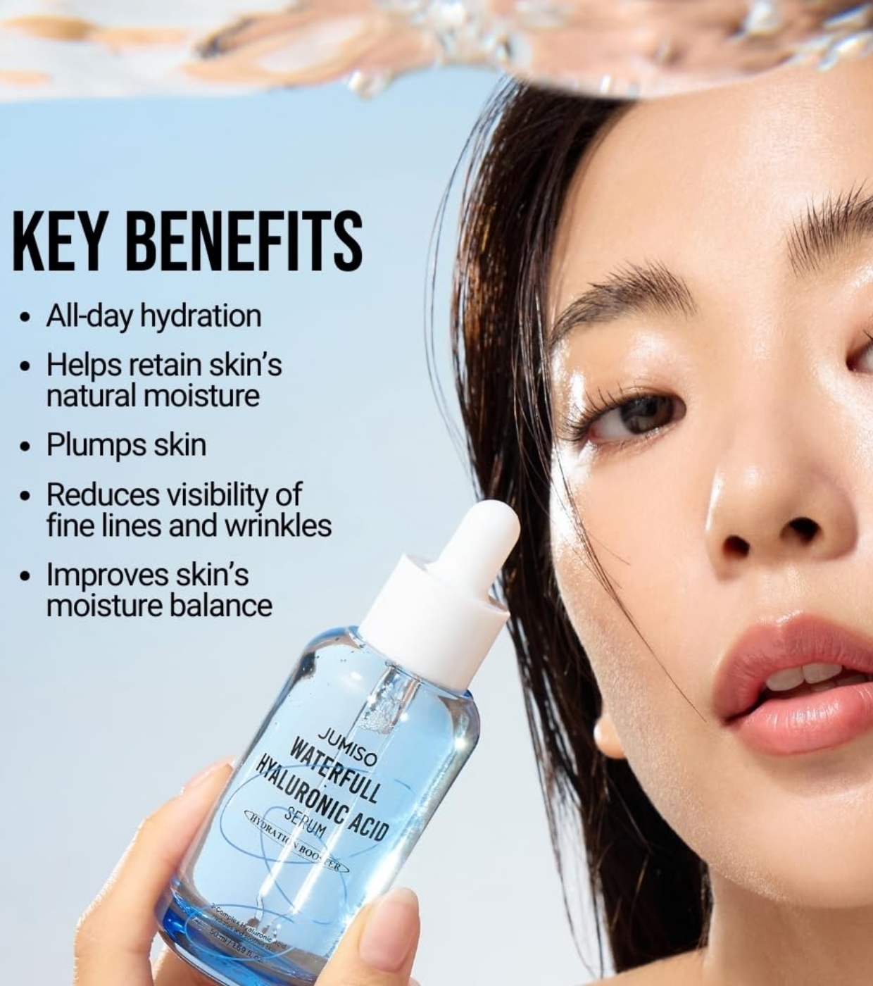 El sérum facial hidratante Hyaluronic Acid de Jumiso está formulado está formulado con ácido hialurónico 3-Complex, pantenol y CeraPresso™ para calmar la piel, reponer la hidratación y reforzar su barrera natural.