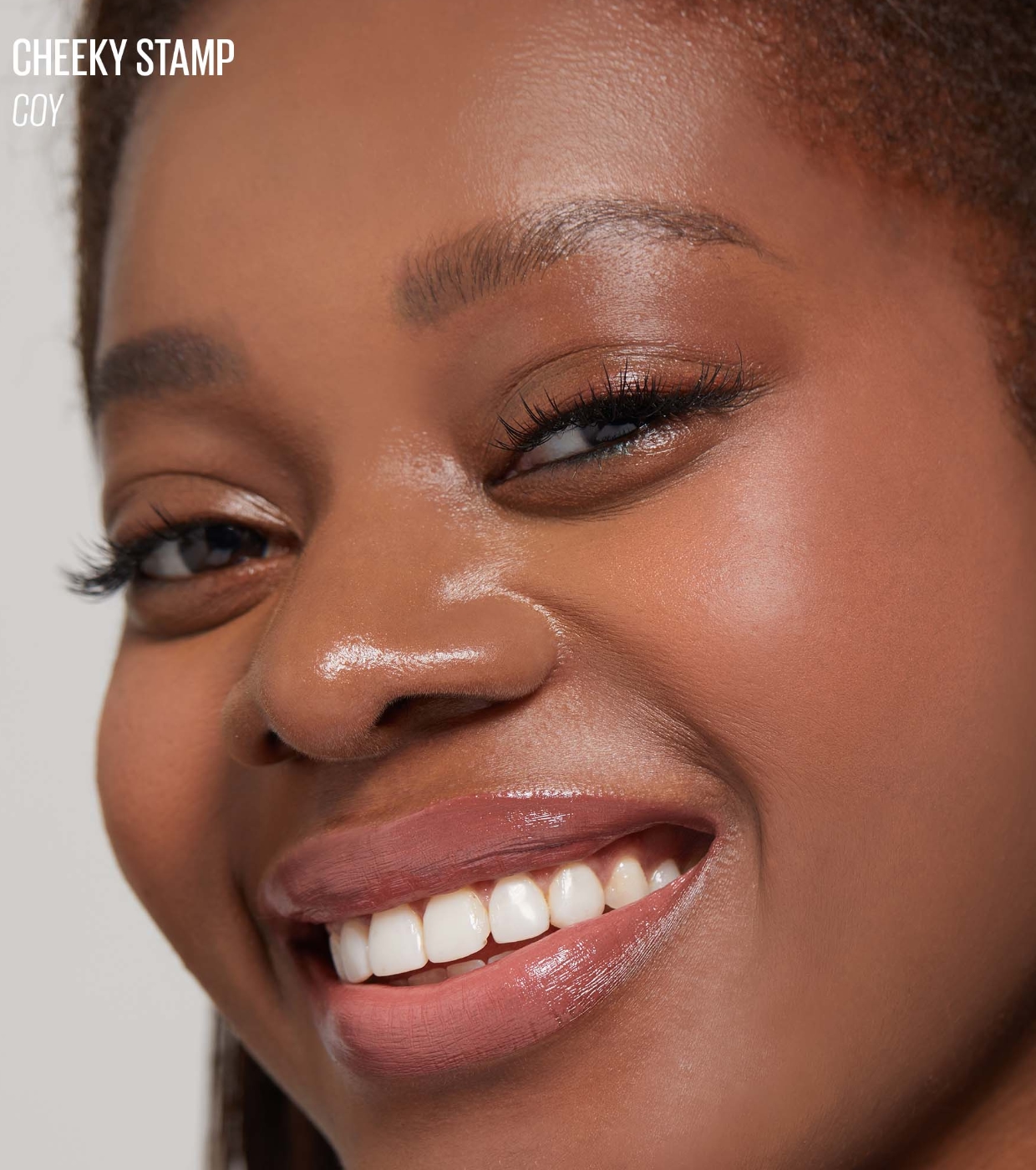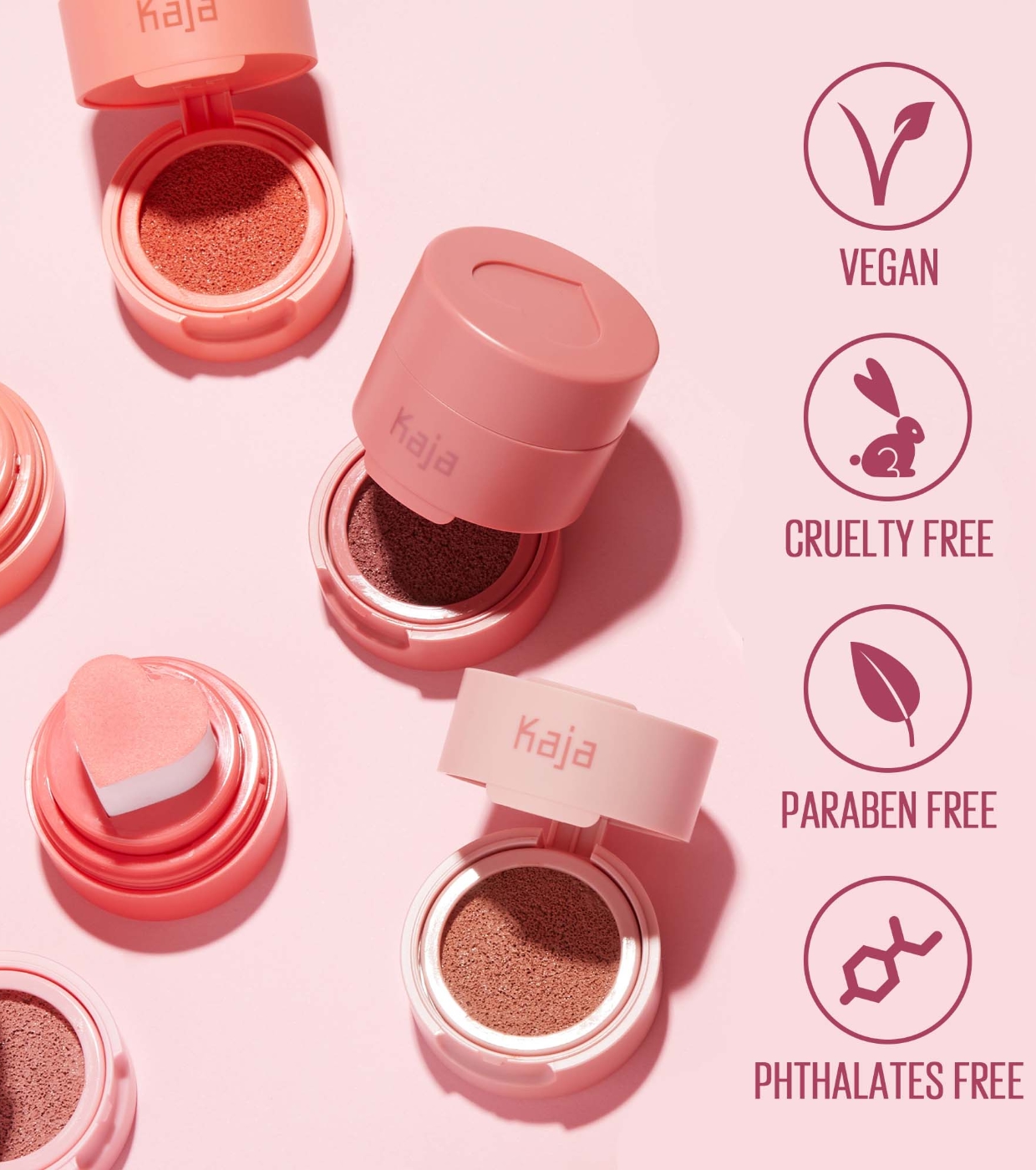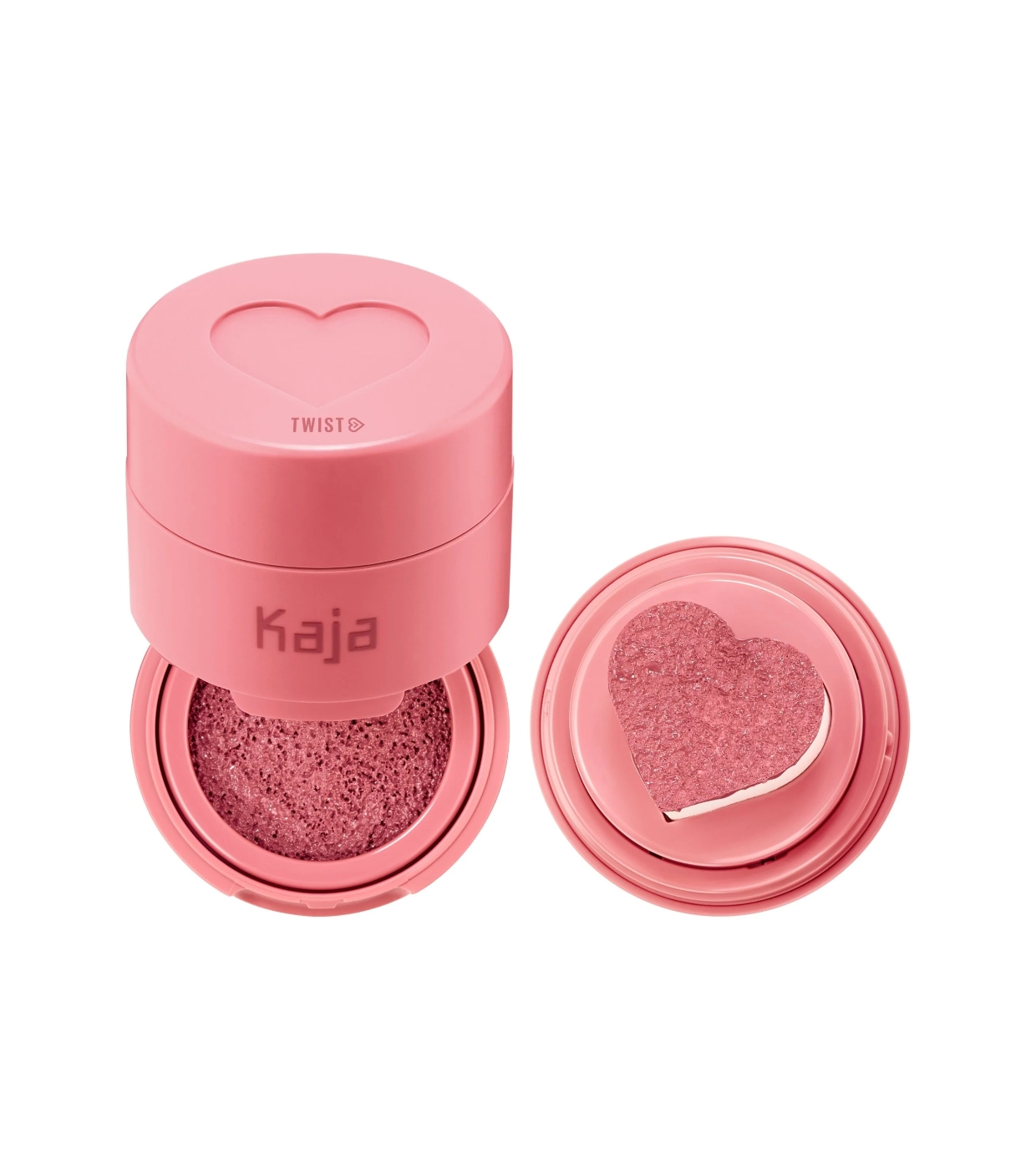 Una fórmula de rubor en cojín, con un aplicador en forma de corazón, que se difumina hasta lograr un rubor de color translúcido y modulable, es el colorete en cushion Cheeky Stamp de Kaja.