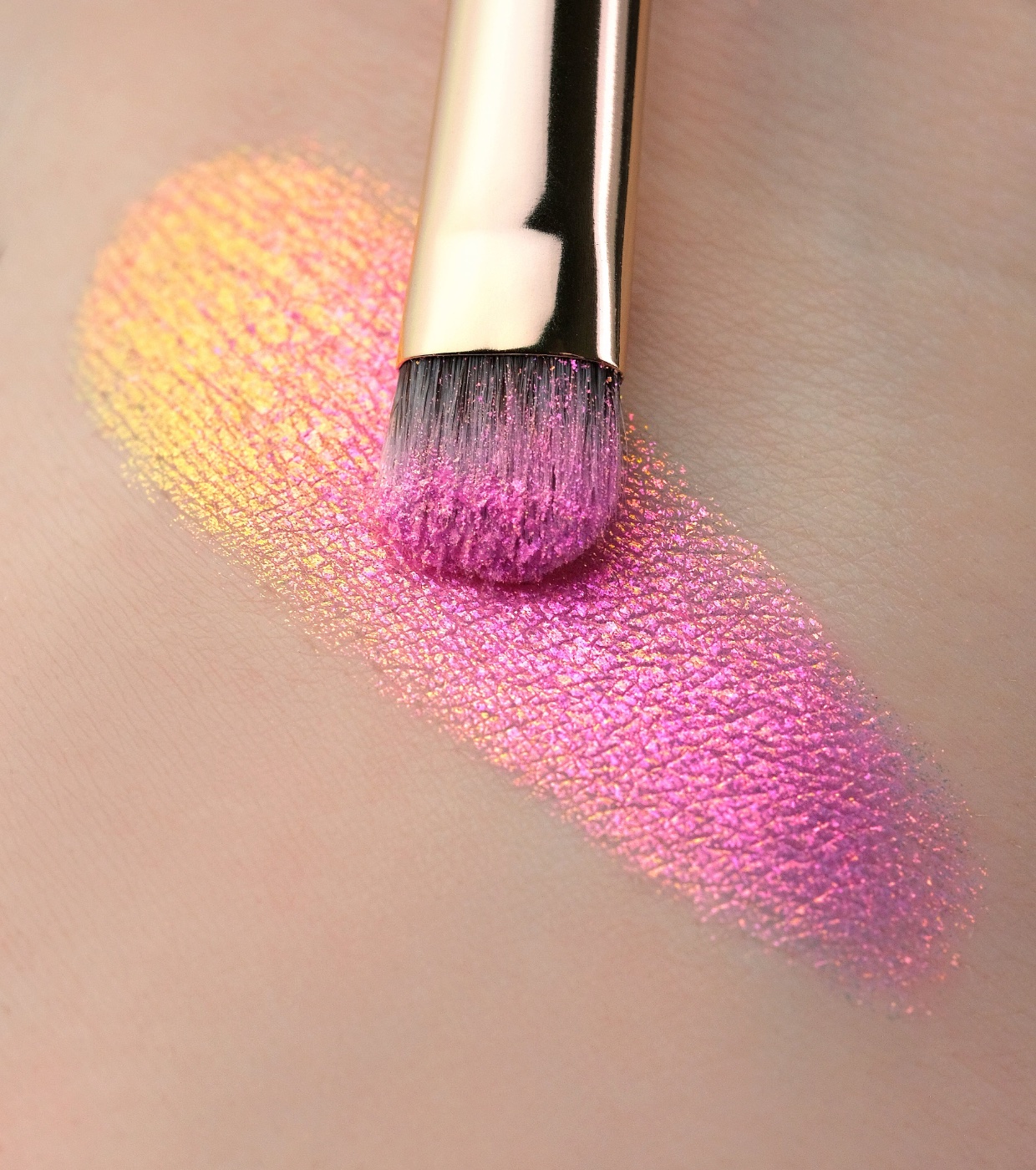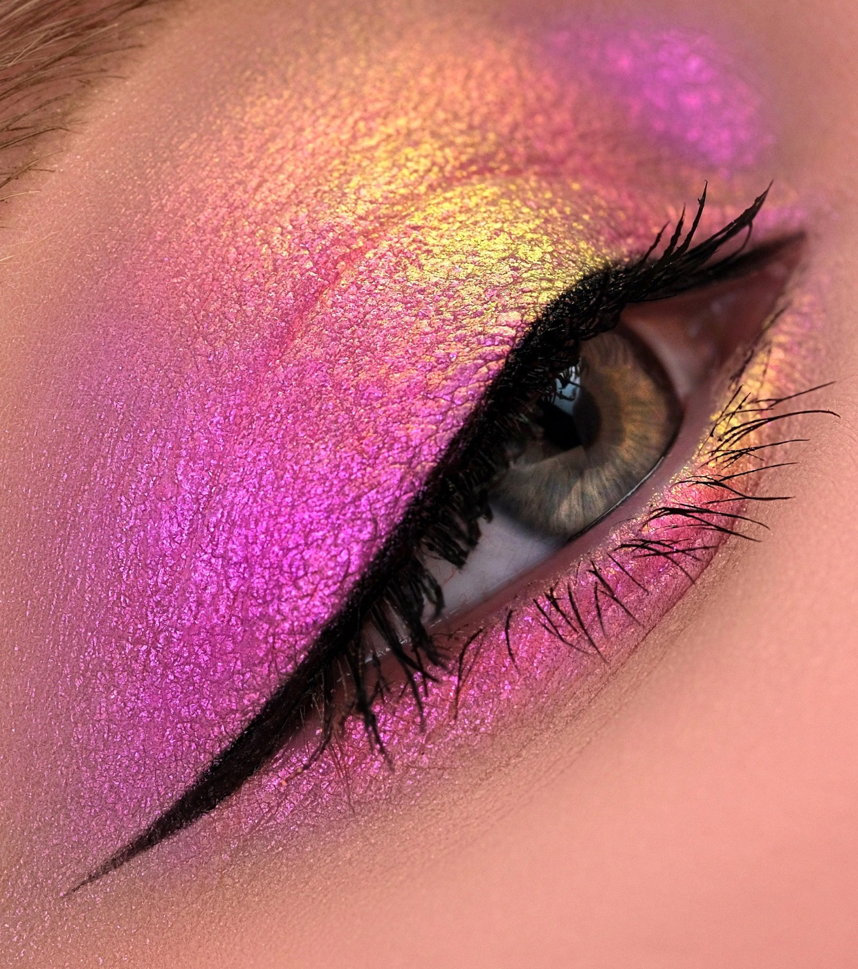 Se aplican fácilmente en el párpado (con una prebase adecuada), no se mueven, se ven intensos y su efecto duocromo es espectacular.