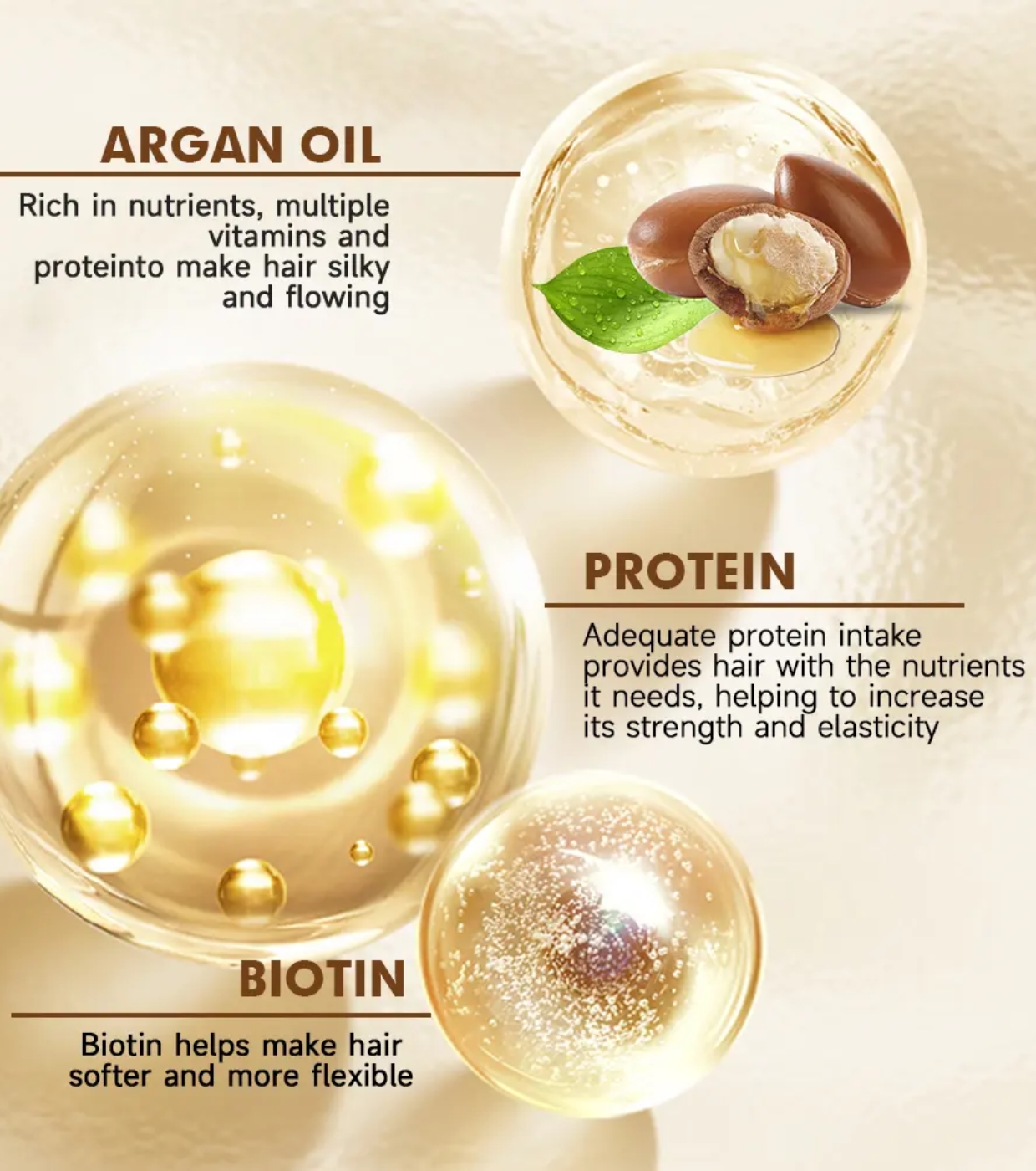 Gracias a su combinación de aceite de argán, queratina y aceites naturales, repara la fibra capilar desde el interior, controla el encrespamiento y aporta un brillo intenso sin apelmazar.