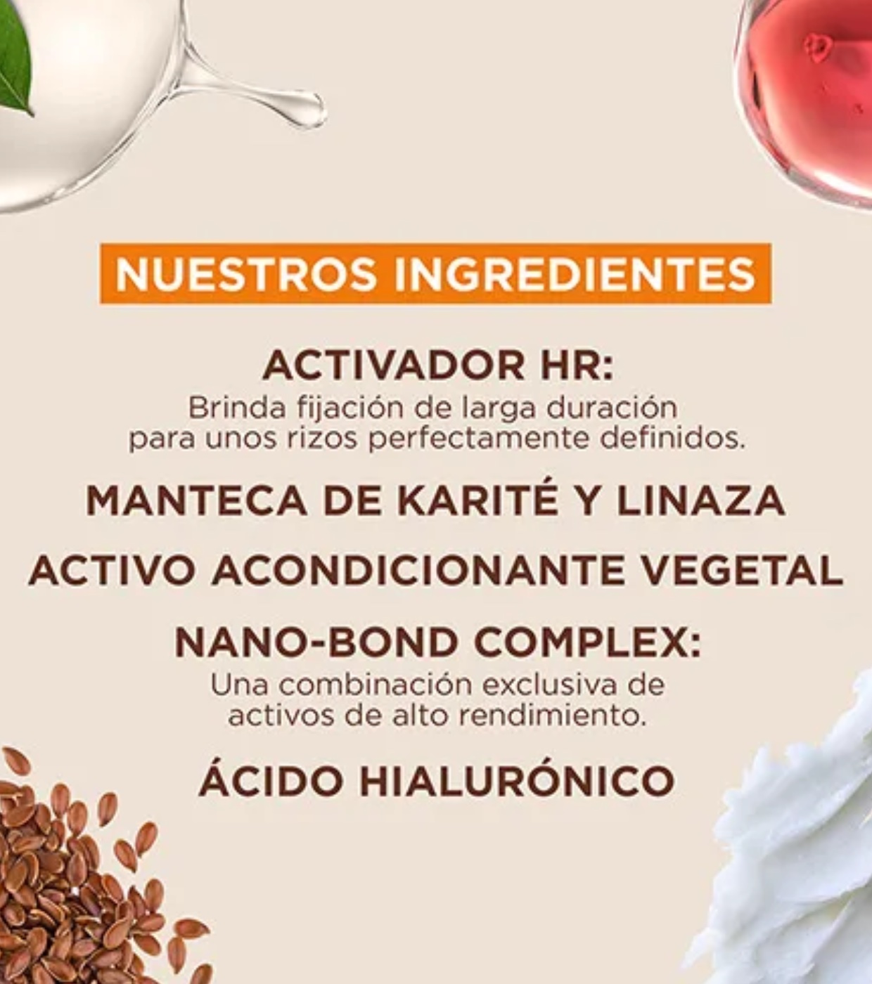Su fórmula enriquecida con Nano-Bond Complex, manteca de karité (Shea Butter) y semillas de lino contribuye a reconstruir e hidratar la fibra capilar, mejorando la elasticidad y suavidad del rizo.