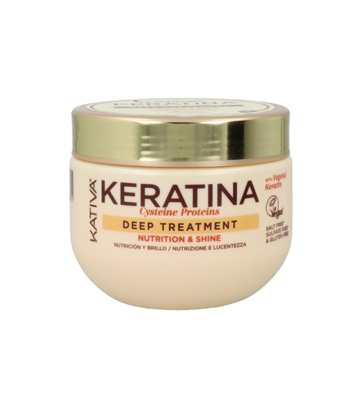 La mascarilla nutrición y brillo de Kativa es un tratamiento intensivo en crema, libre de sal, formulado a base de queratina y ceramidas, especialmente indicado para cabellos muy secos, dañados o maltratados por procesos químicos y/o mecánicos.