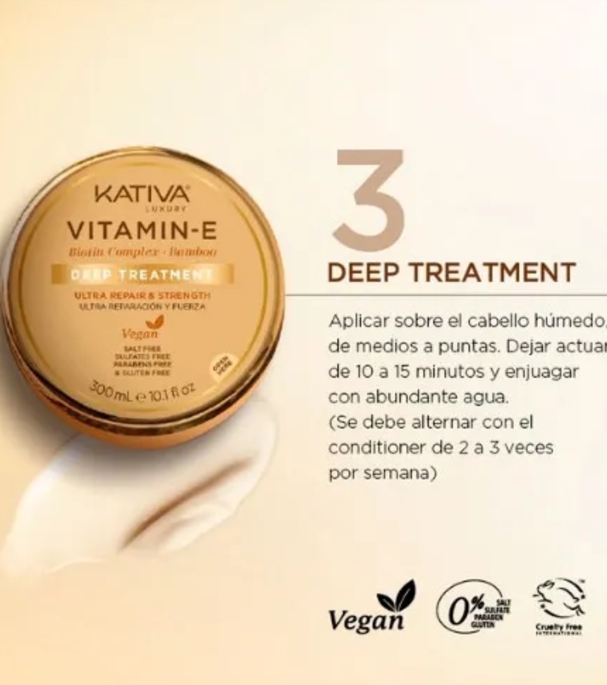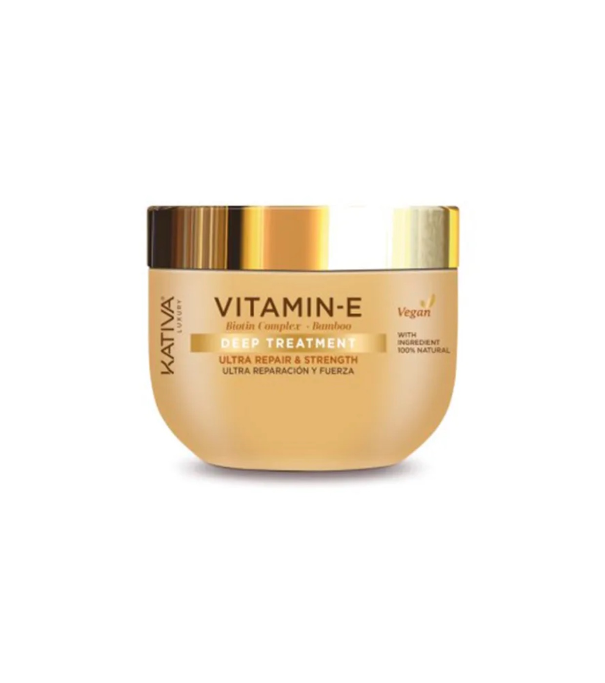 La mascarilla con vitamina E, complejo de biotina y bambú de Kativa está formulada para reparar, fortalecer y proteger el cabello frente a los efectos del paso del tiempo, el estrés y la exposición solar, factores que provocan la pérdida de vitalidad y brillo.