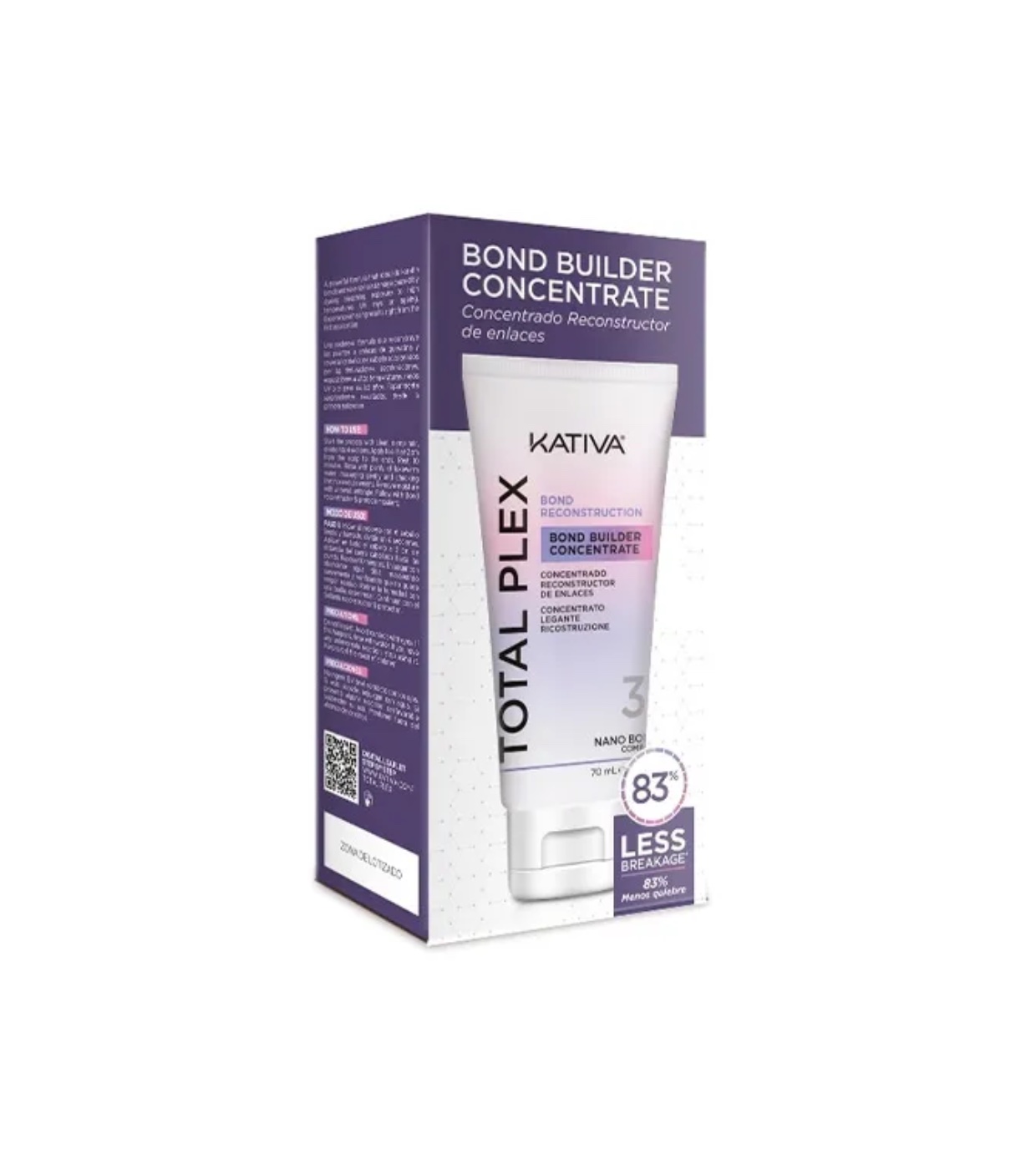 El Total Plex concentrado reconstructor de Kativa es el primer paso de un sistema profesional de reparación en dos fases, formulado para revertir eficazmente los daños capilares causados por tintes, decoloraciones, herramientas de calor, rayos UV y el paso del tiempo.