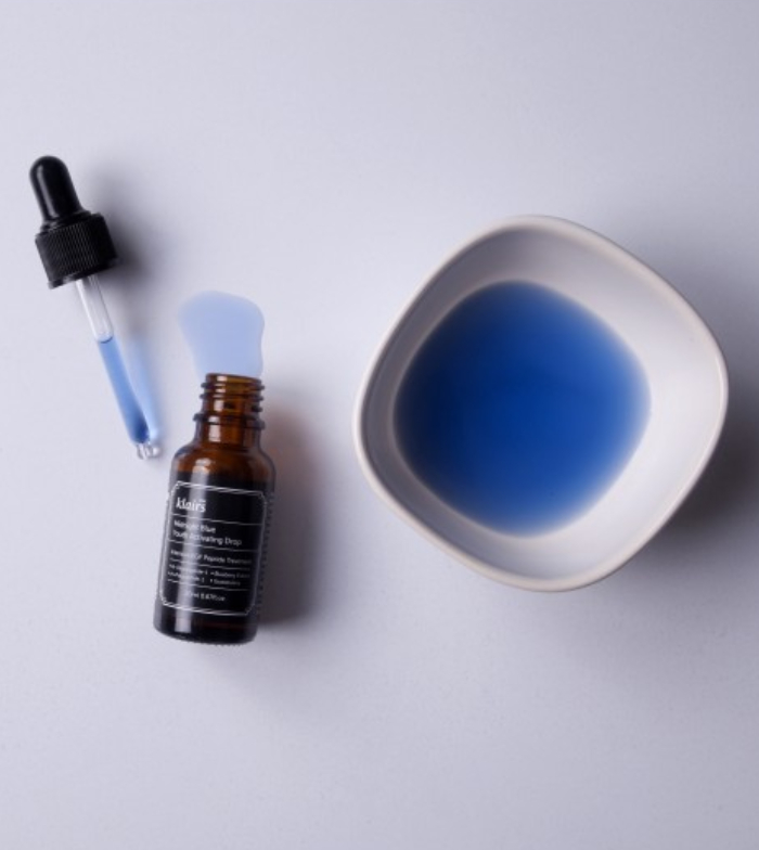 Su tono azulado se debe a su componente llamado guaiazuleno, proveniente de la camomila.