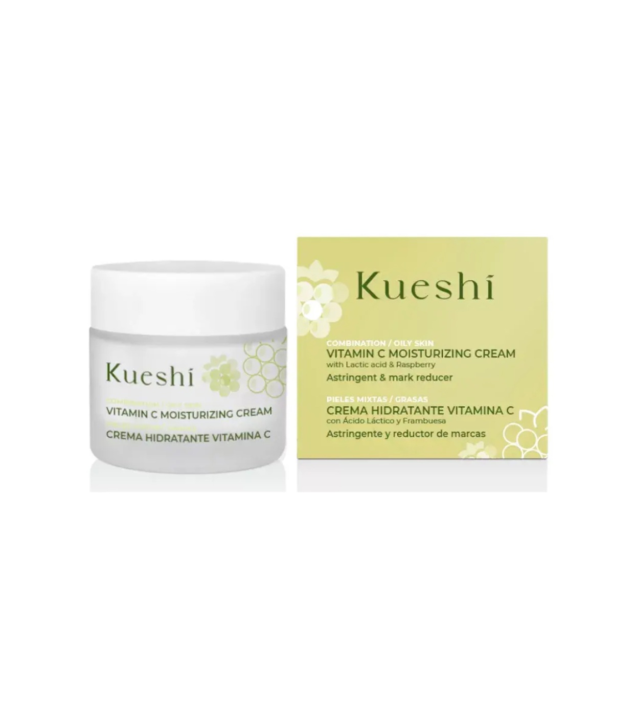 Crema hidratante diaria Kueshi Raspberry + Vitamina C revitaliza y protege tu piel, un tratamiento hidratante ideal para el cuidado diario.