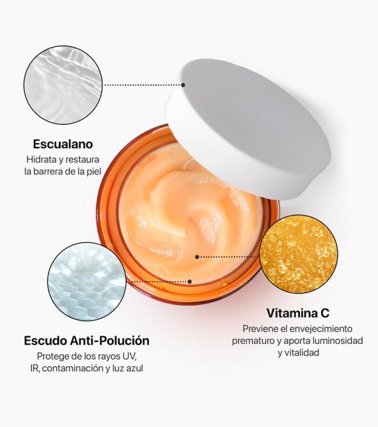 Crema iluminadora con Vitamina C para una piel más luminosa, hidratada y joven.