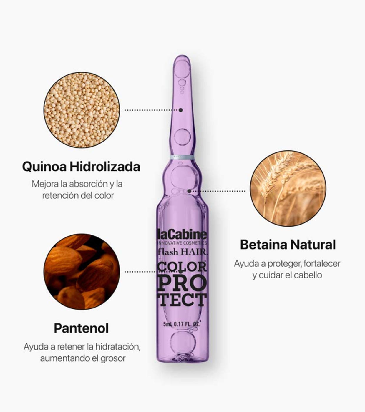 Ampolla capilar, altamente concentrada que actúa sobre el cabello para mantener el color, hidratar en profundidad, suavizar y dar brillo a los cabellos teñidos.