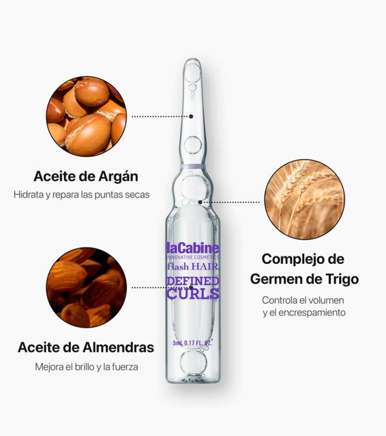 Ampolla capilar, altamente concentrada que es capaz de definir el rizo y controlar el encrespamiento incluso de los rizos más rebeldes.