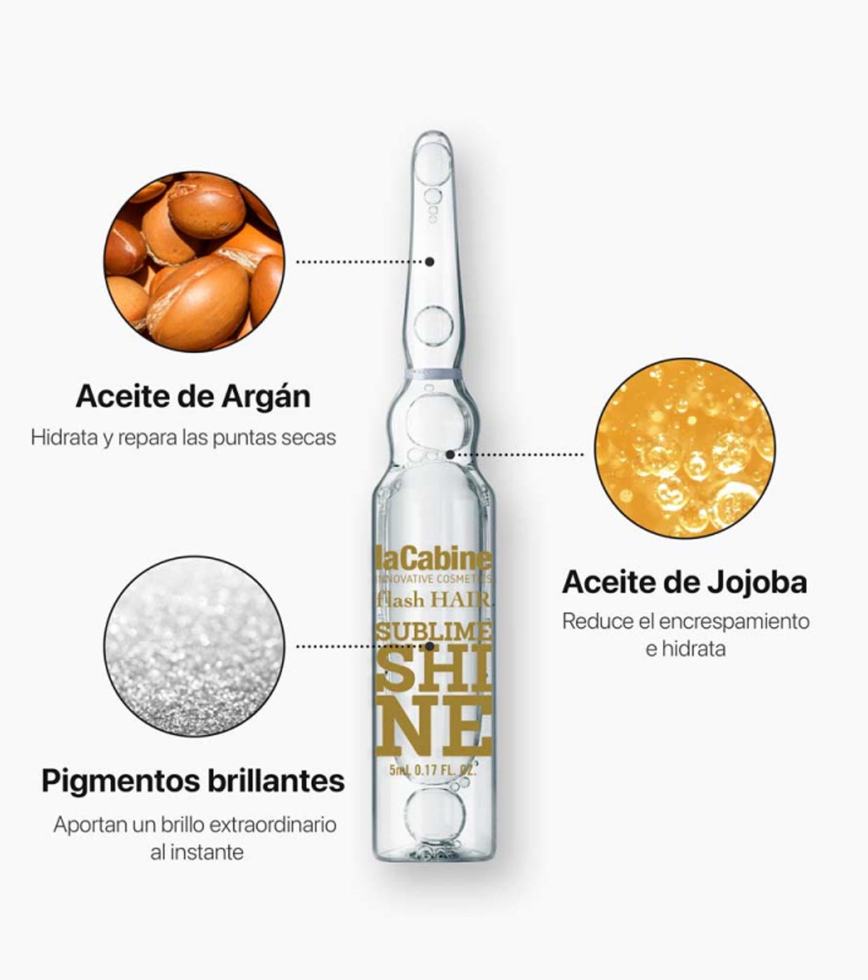 Ampolla capilar, altamente concentrada que proporciona luminosidad y suavidad al cabello.