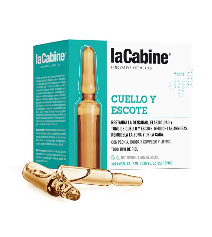 Ampollas concentradas para el cuello y escote que contienen Peonia, Jojoba y un Complejo Y-Lifting ideales para restaurar la densidad, elasticidad y tono del escote a la vez que reducen las arrugas y remodelan la “zona Y” de la cara.