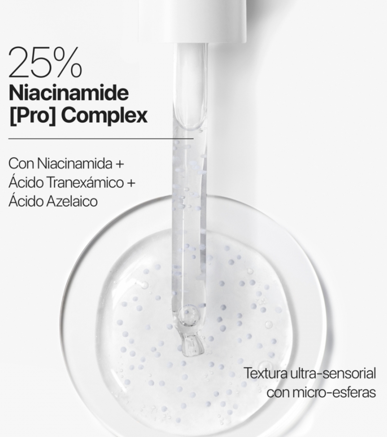 La textura gel fluida con microesferas favorece una liberación óptima de los activos y mejora la absorción del resto de productos de tu rutina.