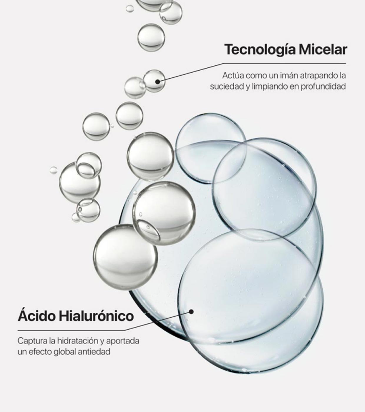 Tónico micelar multi-acción con una infusión de ácido hialurónico para tu piel.