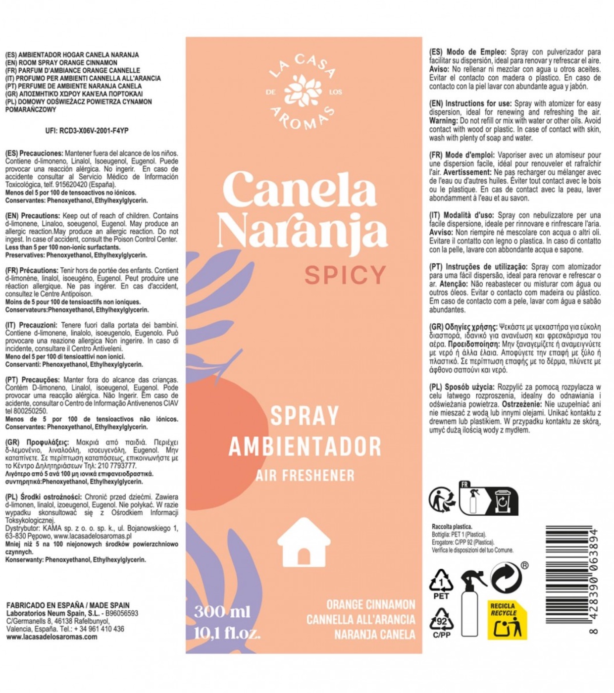 Convierte cada rincón de tu casa en un oasis de frescura con el ambientador en spray Canela Naranja de La Casa de los Aromas, tu mejor aliado para crear ambientes acogedores y llenos de vida.
