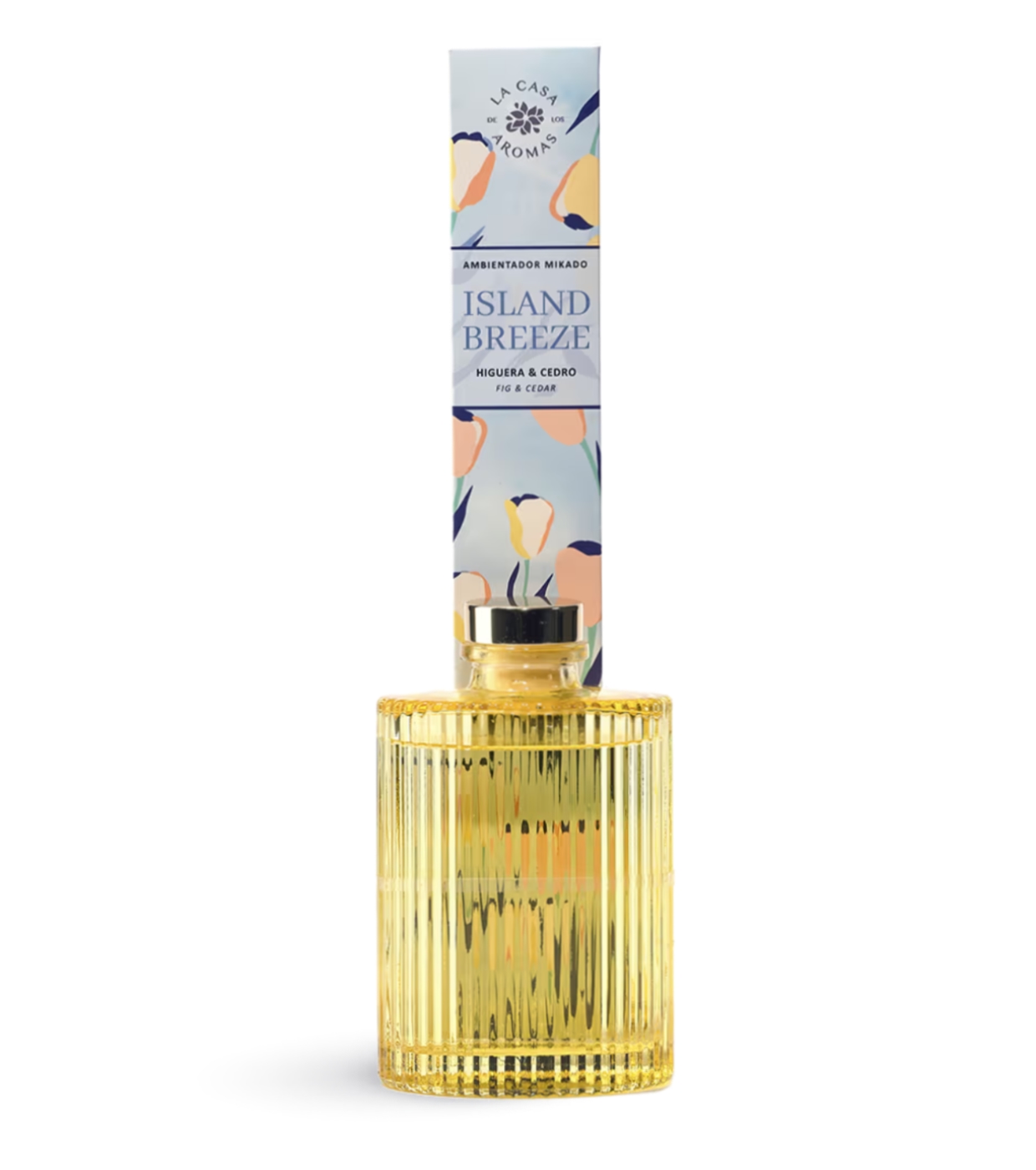 Brandy Island Breeze de La Casa de Aromas destaca por su diseño de vidrio acanalado en un intenso tono amarillo, una pieza decorativa moderna y llena de energía que aporta color y personalidad a cualquier espacio.