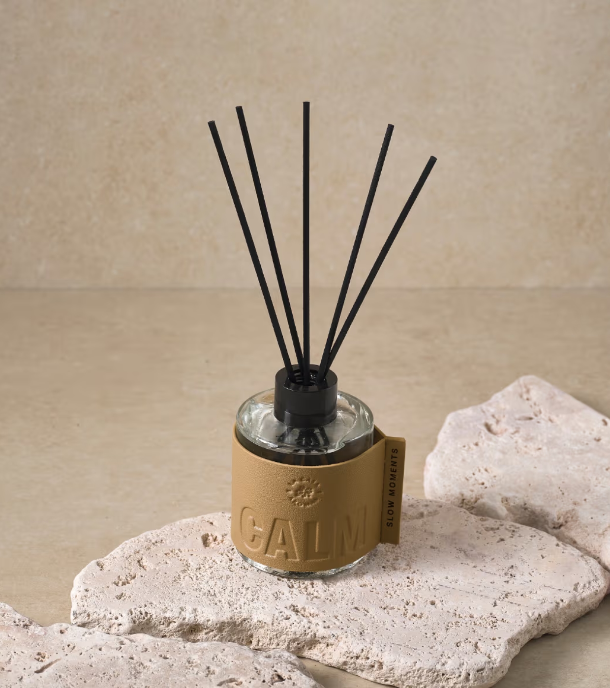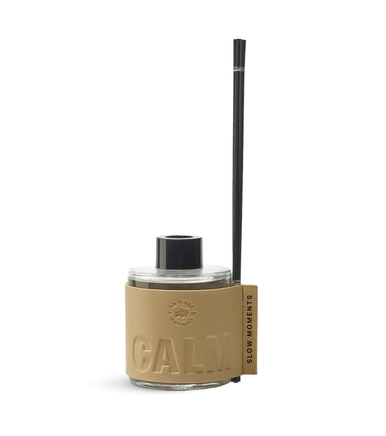 Sus frascos de líneas limpias y acabado efecto cuero prescinden de elementos innecesarios para destacar el material, el color y el aroma como protagonistas.