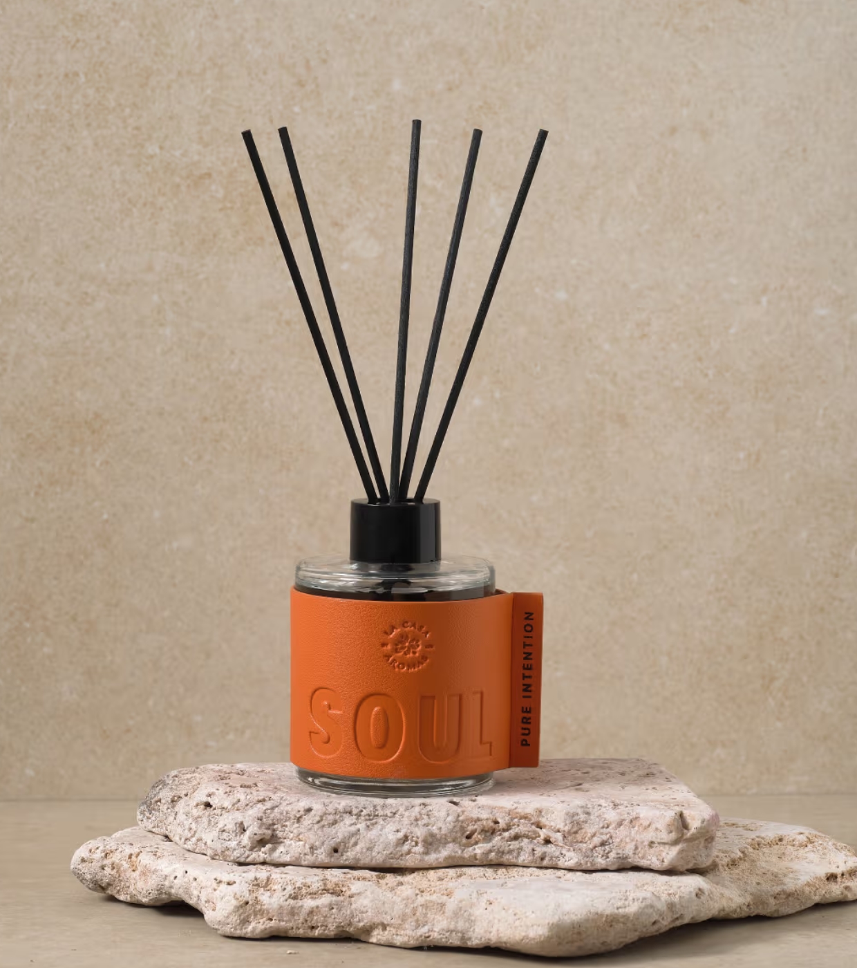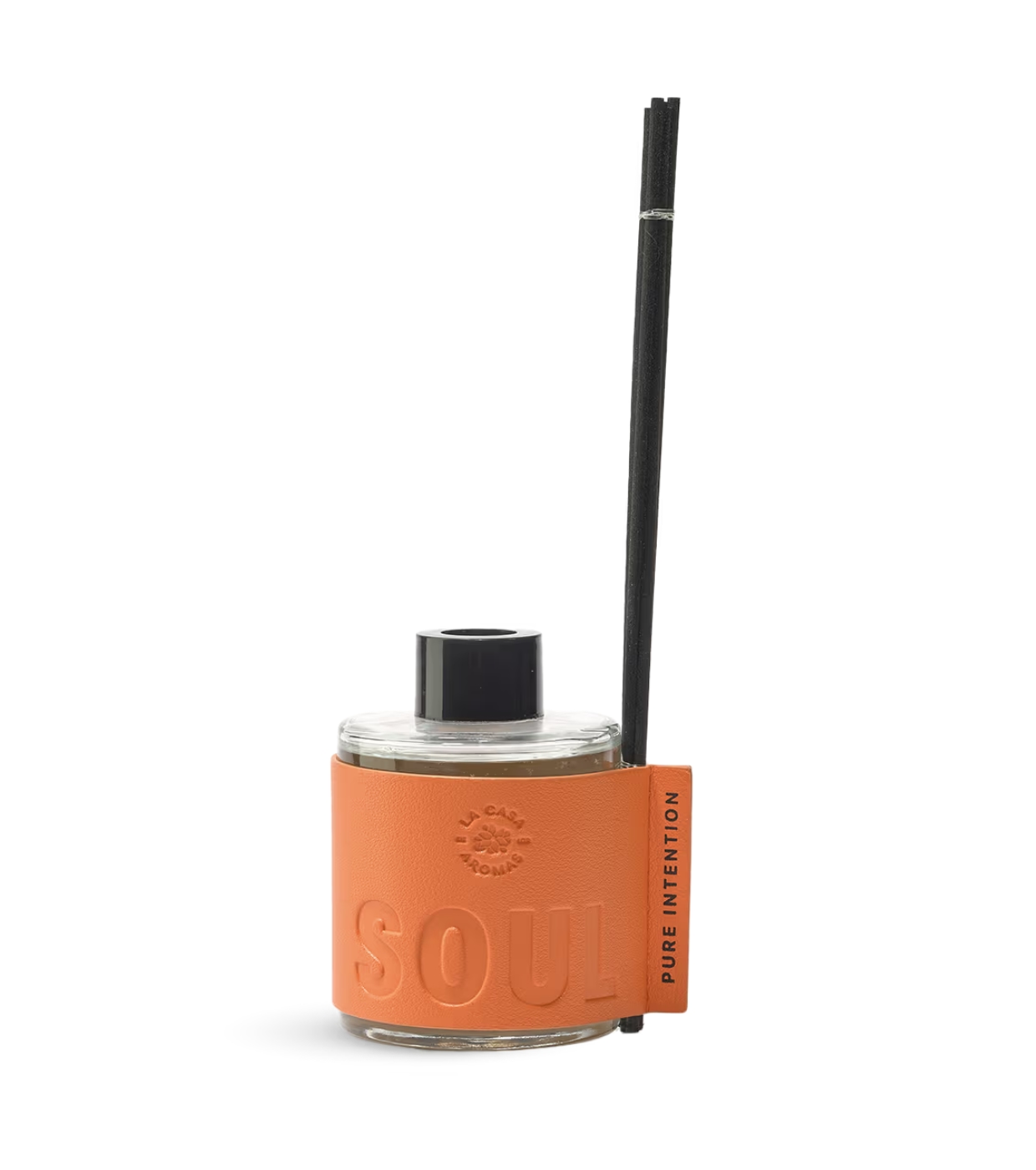 Sus frascos de líneas limpias y acabado efecto cuero eliminan elementos innecesarios para destacar el material, el color y el aroma como protagonistas.